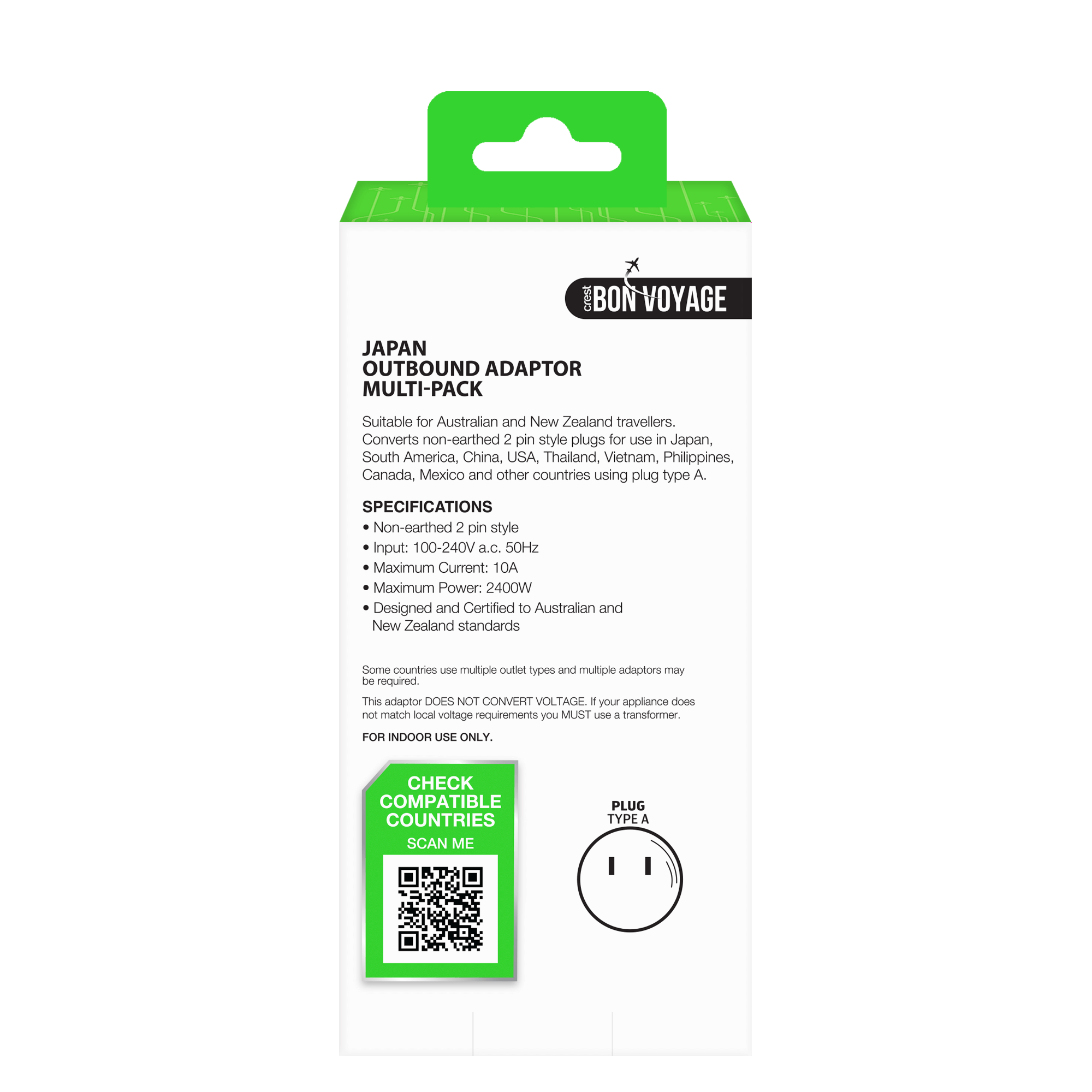 Bon Voyage Travel Adaptor Australia to Japan (2 Pack)