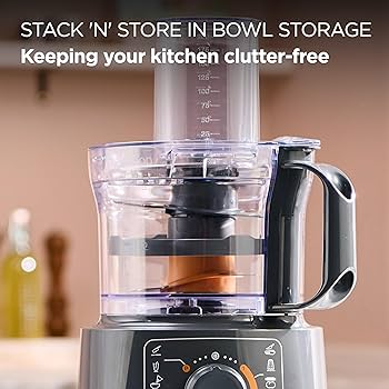 | Additional Features: | In bowl stackable storage, Easy to read icons, Includes sturdy and lightweight plastic blender, Citrus Juicer, Cord storage, Non slip feet, Front facing feed tube |