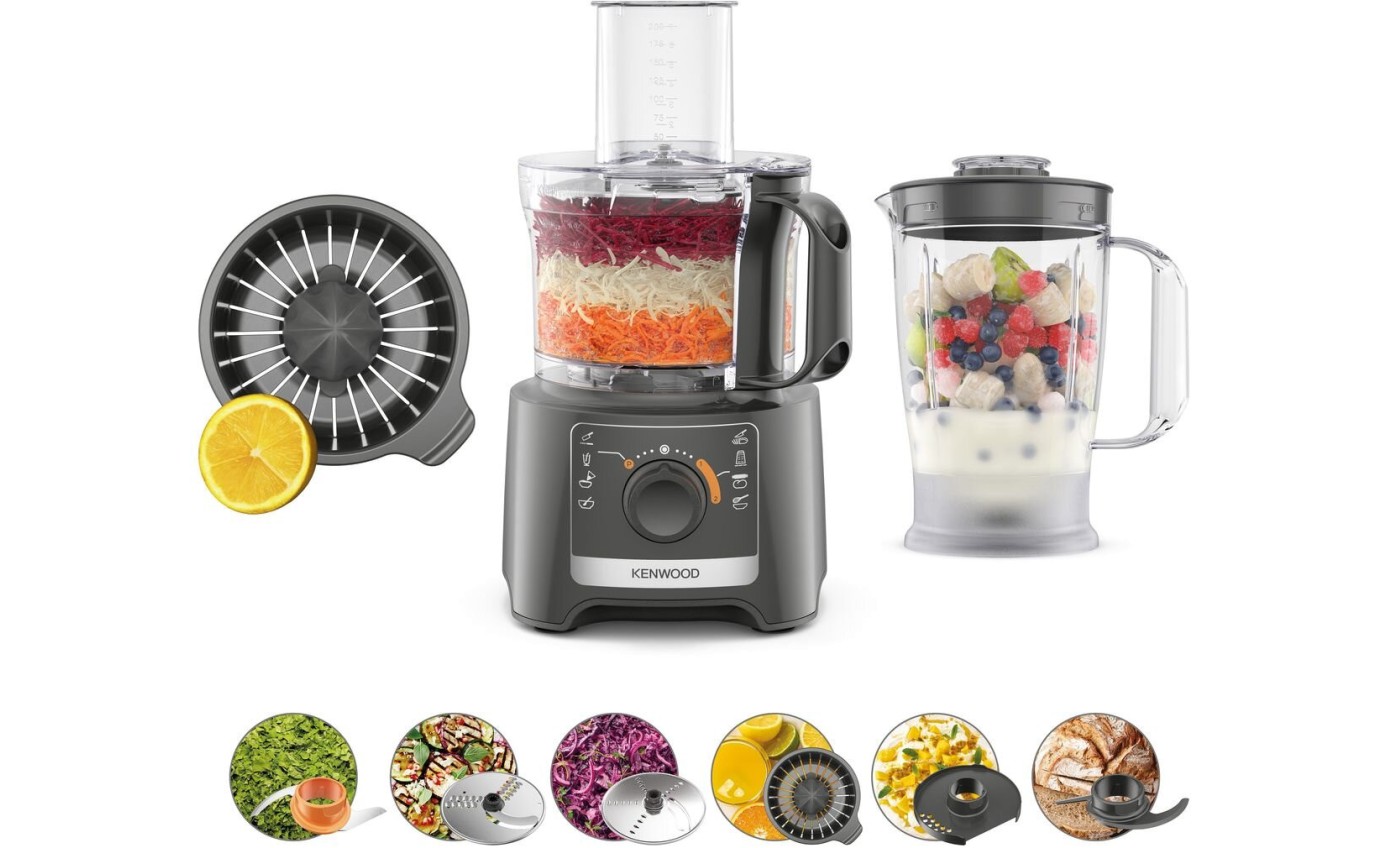 | What's In The Box: | Kenwood Multi Pro Compact All In One System Food Processor And Blender, all included accessories - Knife, Slicing Grating Disc, Compact Whisk Tool, Fine slicing grating disc, Dough tool, Citrus juicer, Blender |