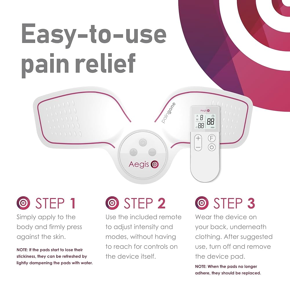 **Introducing Paingone Aegis: Revolutionary Back Pain Relief at Your Fingertips** Say goodbye to back pain and hello to a life of comfort and freedom with the Paingone Aegis Back Pain Relief Device. This innovative, Australian-made solution is designed to provide fast and effective relief from back pain, sciatica, and stiffness, allowing you to take control of your daily life. The Paingone Aegis features advanced TENS (Transcutaneous Electrical Nerve Stimulation) technology, which sends gentle electrical impulses to the affected area, blocking pain signals to the brain and promoting natural healing. The device is easy to use, with a simple and intuitive interface that allows you to customize your treatment sessions to suit your needs. With the Paingone Aegis, you can enjoy a range of benefits, including: * Fast and effective relief from back pain, sciatica, and stiffness * Reduced muscle tension and inflammation * Improved mobility and flexibility * Enhanced overall well-being and quality of life What sets the Paingone Aegis apart is its portability and convenience. Weighing in at just 50 grams, this compact device fits comfortably in your pocket or purse, allowing you to take it with you wherever you go. Whether you're at work, at play, or on-the-go, the Paingone Aegis is always ready to provide relief from back pain. Don't let back pain hold you back any longer. Try the Paingone Aegis today and discover a life free from pain and discomfort. Order now and take the first step towards a healthier, happier you.