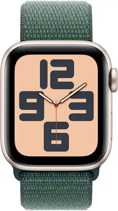 **Elevate Your Active Lifestyle with the Apple Watch SE GPS 40mm Starlight Aluminium - Lake Green Sport Loop** Take your fitness journey to the next level with the Apple Watch SE GPS 40mm Starlight Aluminium, perfectly paired with a vibrant Lake Green Sport Loop. This sleek and stylish smartwatch is designed to help you stay connected, track your progress, and push your limits. The 40mm Starlight Aluminium case is both durable and lightweight, making it perfect for everyday wear. The Lake Green Sport Loop adds a pop of colour and comfort, featuring a soft, breathable design that's ideal for high-intensity workouts or casual daily activities. With built-in GPS, you can track your runs, hikes, and bike rides with precision, while the Apple Watch SE's advanced health features, such as electrocardiogram (ECG) and fall detection, provide an added layer of safety and peace of mind. Stay connected with notifications, music control, and Apple Pay, all from your wrist. Enjoy a seamless Apple ecosystem experience, effortlessly integrating your watch with your iPhone and other Apple devices. With up to 18 hours of battery life, you can power through your day without worrying about running out of juice. Upgrade your fitness routine and stay on top of your game with the Apple Watch SE GPS 40mm Starlight Aluminium - Lake Green Sport Loop. Whether you're a fitness enthusiast, busy professional, or simply looking to stay active and connected, this stylish and feature-packed smartwatch has everything you need to take your lifestyle to the next level.