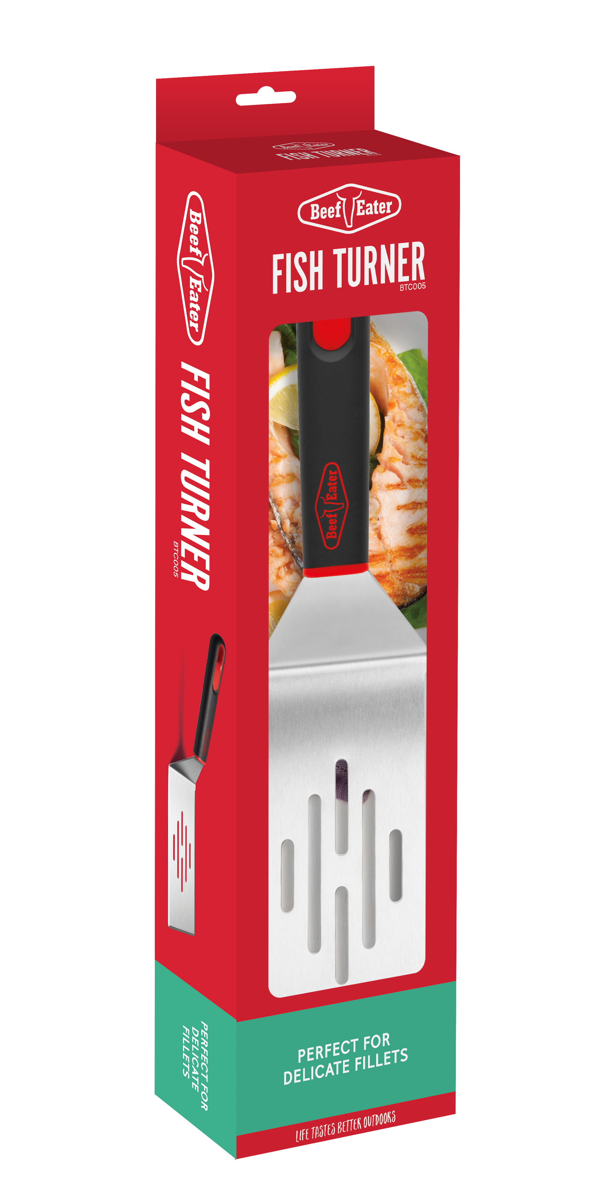 **Introducing the BeefEater BBQ Fish Turner - The Ultimate Game-Changer for Seafood Lovers** Are you tired of struggling to turn delicate fish fillets on the BBQ, only to have them break apart or stick to the grates? Look no further than the BeefEater BBQ Fish Turner, specifically designed to make cooking seafood a breeze. This ingenious tool is a must-have for any BBQ enthusiast who loves cooking fish, prawns, scallops, or squid. The BeefEater BBQ Fish Turner features a long, heat-resistant handle that keeps your hands safe from the heat, while the oversized, slotted head provides maximum support and stability for even the most delicate fish fillets. The unique curved design allows for easy turning and serving, ensuring your seafood is cooked to perfection every time. With the BeefEater BBQ Fish Turner, you'll enjoy numerous benefits that will elevate your outdoor cooking experience. The slotted head allows for even cooking and prevents fish from sticking, reducing the risk of breakage and making food release effortless. The long handle also enables you to cook multiple pieces of seafood at once, making it perfect for large gatherings or family barbecues. Whether you're a seasoned BBQ pro or a beginner, the BeefEater BBQ Fish Turner is an essential tool for anyone who loves cooking seafood. Its durable construction and easy-to-clean design ensure it will become a trusted companion for many outdoor cooking adventures to come. Upgrade your BBQ game with the BeefEater BBQ Fish Turner and discover the secret to perfectly cooked seafood, every time.