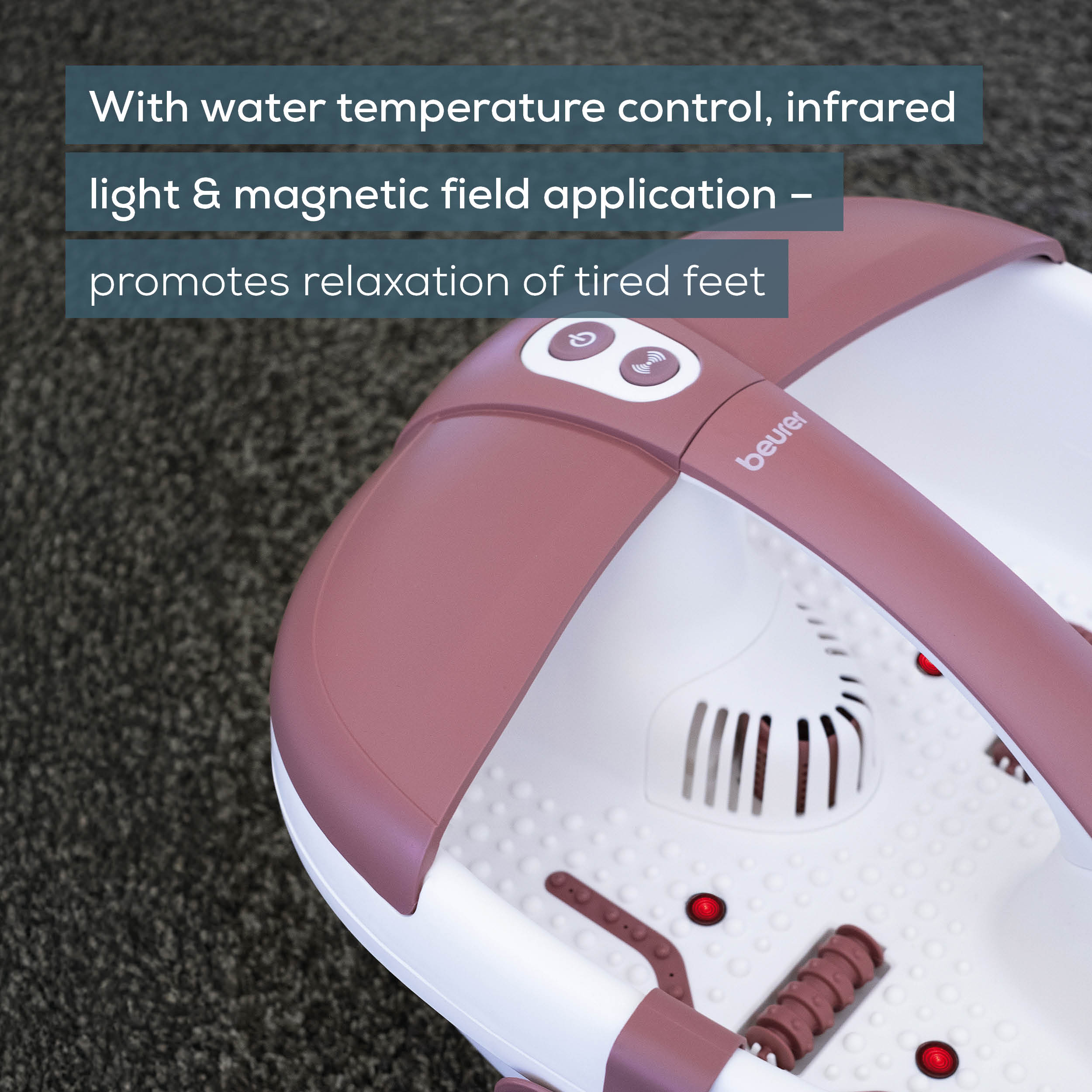 **Indulge in Blissful Relaxation with the Beurer Footspa with Aromatherapy** Treat your hardworking feet to the ultimate pampering experience with the Beurer Footspa with Aromatherapy. This innovative foot spa combines the soothing benefits of warm water therapy with the calming effects of aromatic essential oils, melting away tension and fatigue. The Beurer Footspa features a spacious basin with a comfortable contoured design, allowing you to fully immerse your feet and enjoy a truly relaxing experience. The built-in heating element quickly warms the water to the perfect temperature, while the gentle massage rollers and soothing bubbles work to ease away stress and strain. The aromatherapy function takes relaxation to the next level, releasing a calming mist of fragrant essential oils that promote serenity and tranquility. Choose from three pre-set programs, each carefully designed to target specific areas of tension and fatigue. The "Relax" program soothes and calms, the "Massage" program invigorates and stimulates, and the "Heat" program provides intense warmth and comfort. With its easy-to-use controls and compact design, the Beurer Footspa is perfect for use in the comfort of your own home. Enjoy the benefits of regular spa treatments without the hefty price tag, and say goodbye to tired, aching feet. Treat yourself to a little luxury and experience the bliss of relaxation with the Beurer Footspa with Aromatherapy.
