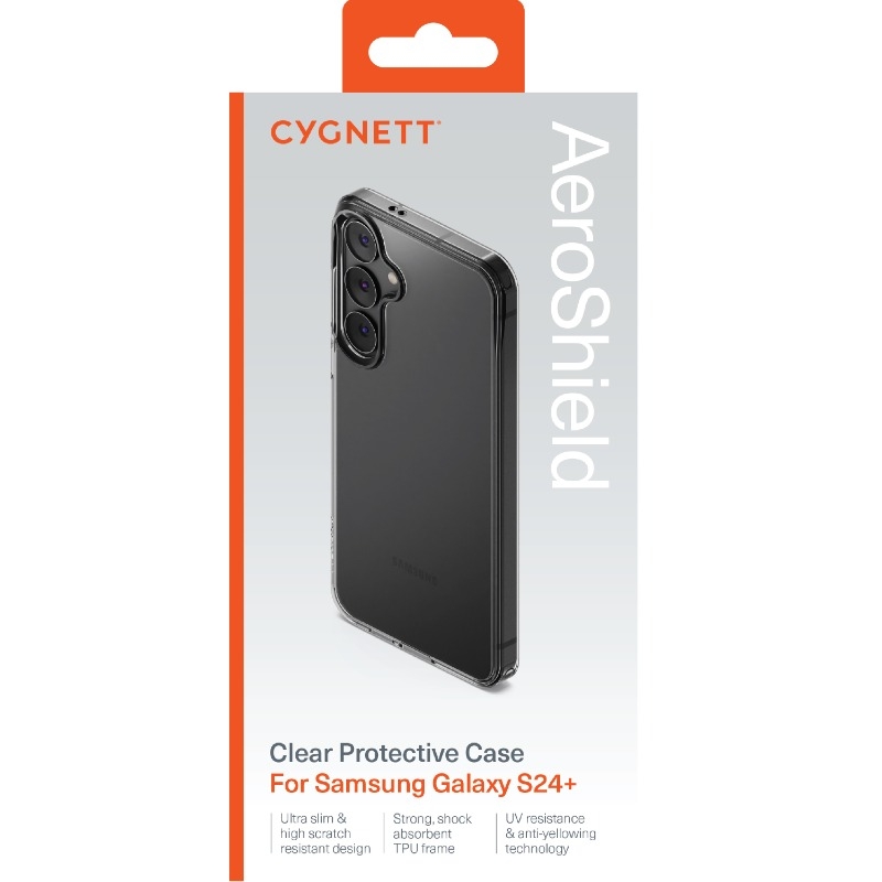 **Unparalleled Protection for Your Samsung Galaxy S24+: Introducing the Cygnett AeroShield Case** Experience the ultimate in protection and style with the Cygnett AeroShield Case, specifically designed for your Samsung Galaxy S24+. This premium case combines advanced technology with sleek design, ensuring your device stays safe from the rigors of daily life while maintaining its sleek aesthetic. The AeroShield Case boasts a unique aerodynamic design, precision-engineered to dissipate shock and absorb impact. The ultra-thin profile (just 1.2mm) provides a snug, bulk-free fit, while the advanced PC material offers exceptional strength and durability. The result? Unwavering protection against drops, bumps, and scratches, giving you peace of mind wherever your day takes you. But protection is just the beginning. The AeroShield Case also features a raised bezel to safeguard your screen, precision-cut ports for effortless access, and a subtle textured grip to prevent slips and falls. The matte finish adds a touch of sophistication, while the transparent backing showcases your device's original design. What sets the AeroShield Case apart is its commitment to functionality. The clever design allows for wireless charging compatibility, ensuring you can power up your device without the hassle of removing the case. Plus, the case is easy to install and remove, making it a breeze to swap out or clean. Upgrade your mobile experience with the Cygnett AeroShield Case for Samsung Galaxy S24+. With its unbeatable combination of protection, style, and functionality, this case is the perfect accessory for anyone seeking a reliable and premium solution to safeguard their device.