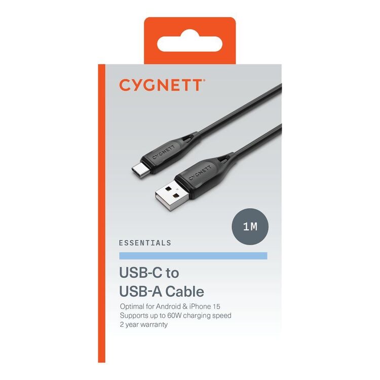 **Reliable Connectivity, Wherever You Go** Stay connected on-the-go with the Cygnett Essentials USB-C to USB-A Cable, designed to provide a fast and reliable connection between your devices. This 1-meter long cable is the perfect accessory for anyone who needs to transfer data, charge their devices, or connect to peripherals on a daily basis. **Fast Data Transfer** With a USB 3.2 Gen 1 speed of up to 5Gbps, this cable allows for fast data transfer between your devices, making it ideal for transferring large files, videos, and photos. Whether you're a professional who needs to transfer files quickly or a student who wants to share content with friends, this cable has got you covered. **Universal Compatibility** The Cygnett Essentials USB-C to USB-A Cable is designed to be universally compatible with a wide range of devices, including laptops, tablets, smartphones, and desktop computers. The USB-C connector is reversible, making it easy to plug in without worrying about the orientation. **Durable and Tangle-Free** Built to last, this cable features a durable construction that can withstand the rigors of daily use. The tangle-free design ensures that the cable stays organized and easy to manage, even when tossed into a bag or backpack. **Why Choose This Cable?** With its fast data transfer speeds, universal compatibility, and durable design, the Cygnett Essentials USB-C to USB-A Cable is the perfect accessory for anyone who wants a reliable and convenient way to connect their devices. Whether you're at home, in the office, or on-the-go, this cable is the perfect companion for your digital life.