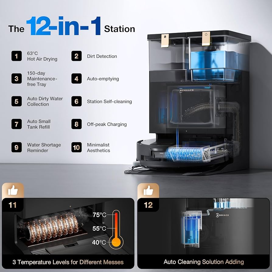 **Experience Unparalleled Cleaning with the Ecovacs DEEBOT X8 PRO OMNI Robotic Vacuum** Revolutionize your cleaning routine with the Ecovacs DEEBOT X8 PRO OMNI Robotic Vacuum, the ultimate game-changer in home cleaning technology. This cutting-edge robot vacuum is designed to provide an unparalleled cleaning experience, effortlessly navigating and sanitizing your home with precision and power. **Advanced Navigation and Mapping** Equipped with advanced navigation and mapping technology, the DEEBOT X8 PRO OMNI expertly charts your home's layout, ensuring a thorough and efficient cleaning path. The robot's advanced sensors and cameras work in tandem to detect and adapt to changing environments, effortlessly avoiding obstacles and stairs. **Unbeatable Suction Power and Cleaning Modes** With an impressive 5000Pa suction power, the DEEBOT X8 PRO OMNI tackles even the toughest messes with ease. Choose from four customizable cleaning modes - Auto, Edge, Spot, and Max - to tailor your cleaning experience to your specific needs. The robot's large 290ml dustbin and advanced filtration system ensure a cleaner, healthier home environment. **Convenience and Control at Your Fingertips** Schedule cleanings, monitor progress, and receive notifications with the intuitive Ecovacs app. Voice control compatibility with Amazon Alexa and Google Assistant adds an extra layer of convenience. With a long-lasting battery life and auto-recharge feature, you can enjoy a hassle-free cleaning experience. **Why Choose the DEEBOT X8 PRO OMNI?** Say goodbye to tedious vacuuming and hello to a cleaner, healthier home. The Ecovacs DEEBOT X8 PRO OMNI Robotic Vacuum offers unparalleled performance, advanced navigation, and seamless control. Experience the future of cleaning today and discover a smarter way to keep your home spotless.