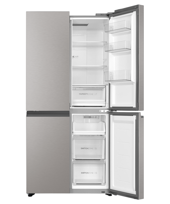 **Experience Unparalleled Freshness with the Haier 463L Quad Door Refrigerator** Elevate your kitchen with the cutting-edge Haier 463L Quad Door Refrigerator, designed to revolutionize the way you store and preserve your food. This innovative appliance boasts an impressive 463-liter capacity, providing ample space to store all your favorite ingredients, leftovers, and snacks. The quad-door design is a game-changer, offering four separate compartments that can be set to different temperatures, ensuring each item is stored at its optimal level. Keep your fruits and vegetables crisp in the dedicated crisper drawer, while your meats, dairy, and beverages remain fresh in their respective zones. The flexibility to customize temperature settings means you can store everything from delicate seafood to robust cheeses with confidence. This Haier refrigerator also features advanced technology, including Multi-Air Flow and Humidity Control, which work in tandem to maintain a consistent temperature and humidity level throughout the appliance. This results in longer-lasting freshness, reduced food waste, and a significant reduction in energy consumption. Additional features include: * Advanced Inverter Technology for efficient energy use * Fast Freeze function to rapidly chill new items * Spill-proof shelves and adjustable storage compartments for easy organization * LED lighting for enhanced visibility and a modern aesthetic Upgrade your kitchen with the Haier 463L Quad Door Refrigerator, perfect for families, entertainers, and health-conscious individuals who demand the best in food storage and preservation. With its impressive capacity, advanced features, and energy-efficient design, this refrigerator is the ultimate addition to any modern home. Experience the Haier difference today!