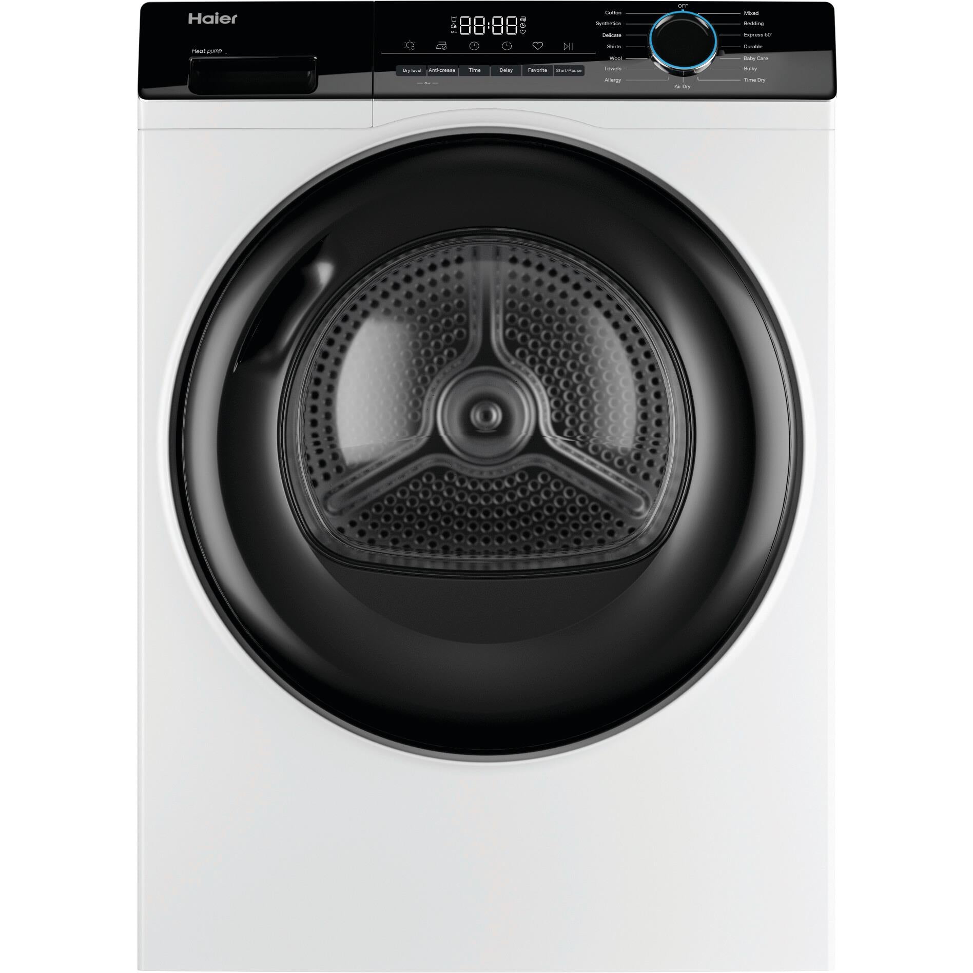 **Introducing the Haier 8kg Heat Pump Dryer: Efficient, Eco-Friendly, and Gentle on Clothes** Experience the latest in laundry technology with the Haier 8kg Heat Pump Dryer, designed to make doing laundry easier, faster, and more environmentally friendly. This innovative dryer uses advanced heat pump technology to dry your clothes, resulting in significant energy savings and a reduced carbon footprint. With a generous 8kg capacity, this dryer can handle large or bulky loads with ease, making it perfect for families or households with multiple people. The sleek and modern design ensures it will fit seamlessly into any laundry space, while the intuitive control panel makes it easy to operate and customize your drying cycle. The Haier 8kg Heat Pump Dryer boasts a range of features that set it apart from traditional dryers. The heat pump technology uses refrigerant to absorb heat from the air, which is then used to dry your clothes. This means lower energy consumption, reduced wear and tear on your clothes, and a significant decrease in noise levels. Additionally, the dryer's advanced sensors detect moisture levels and adjust the drying cycle accordingly, ensuring your clothes come out perfectly dry and fresh. Say goodbye to tedious sorting and hello to effortless laundry days. The Haier 8kg Heat Pump Dryer is designed to make your life easier, with features like automatic anti-crease, delay start, and a child safety lock. Plus, with its A++ energy rating, you can enjoy significant savings on your energy bills. Upgrade to the Haier 8kg Heat Pump Dryer today and experience the perfect blend of innovation, efficiency, and convenience.