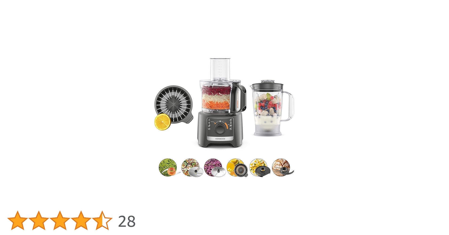| What's In The Box: | Kenwood Multi Pro Compact All In One System Food Processor And Blender, all included accessories - Knife, Slicing Grating Disc, Compact Whisk Tool, Fine slicing grating disc, Dough tool, Citrus juicer, Blender |