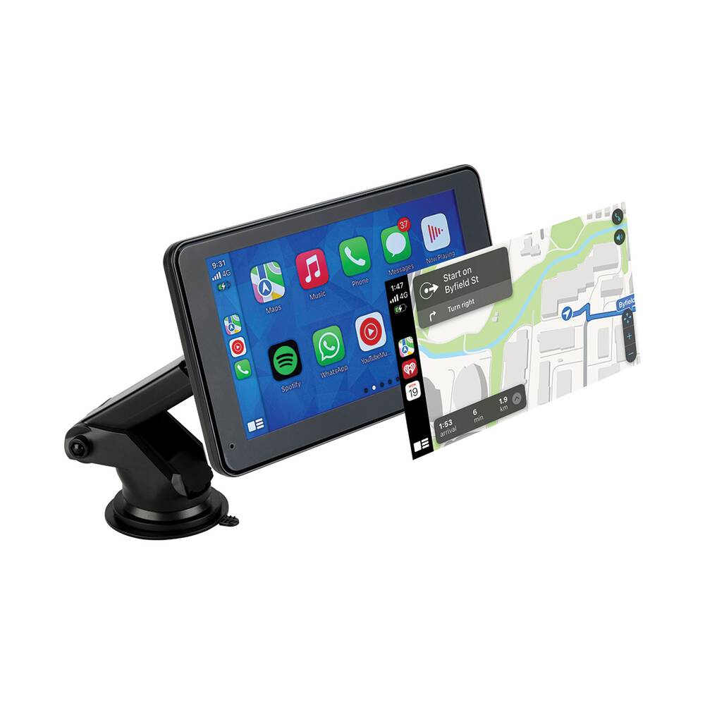 **Upgrade Your Drive with the Laser 7inch Portable CarPlay Android Auto** Take your driving experience to the next level with the innovative Laser 7inch Portable CarPlay Android Auto. This cutting-edge device seamlessly integrates your smartphone with your vehicle, providing a safer, more convenient, and entertaining ride. Featuring a vibrant 7-inch touchscreen display, this portable unit wirelessly connects to your car's stereo system, allowing you to access a range of apps, maps, and music libraries on the go. With CarPlay and Android Auto compatibility, you can enjoy a unified interface that mirrors your phone's display, ensuring a familiar and intuitive experience. Stay connected and entertained with: * Hands-free phone calls and messaging via Siri or Google Assistant * Turn-by-turn navigation with real-time traffic updates * Access to your favorite music streaming services and podcasts * Voice command control for a safer, distraction-free drive The Laser 7inch Portable CarPlay Android Auto is designed with convenience in mind. Its compact, lightweight design makes it easy to install and remove, while the long-lasting battery life ensures uninterrupted use on long road trips. Plus, with automatic software updates, you'll always have access to the latest features and improvements. Experience the ultimate in-car infotainment with the Laser 7inch Portable CarPlay Android Auto. Perfect for road warriors, commuters, and families alike, this innovative device is the perfect accessory for any vehicle. Upgrade your drive today and discover a smarter, more enjoyable way to travel.