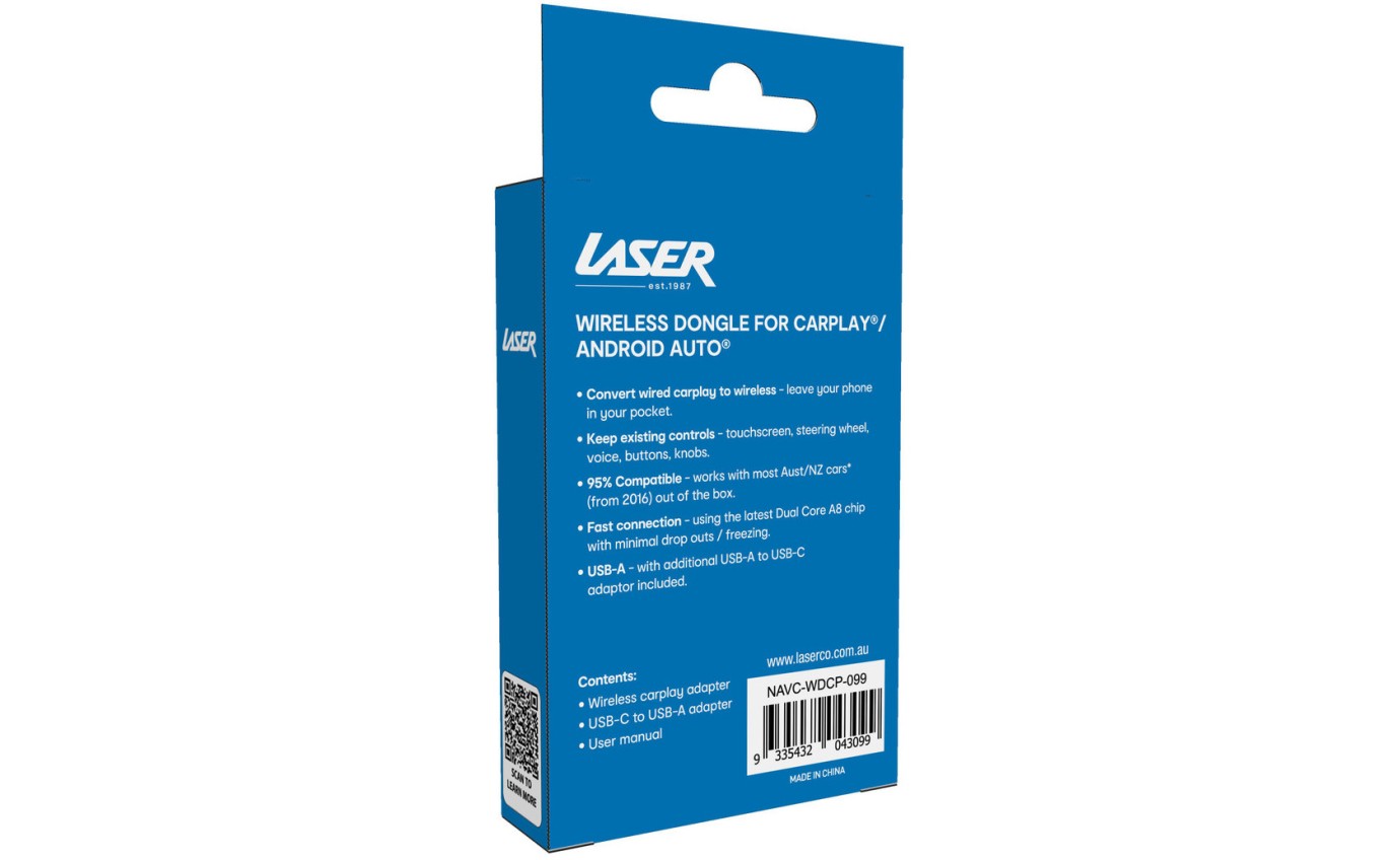 **Unlock Seamless Connectivity on the Go: Introducing the Laser Wireless Dongle for CarPlay** Take your in-car entertainment and navigation experience to the next level with the Laser Wireless Dongle for CarPlay, designed specifically for Australian drivers. This innovative device empowers you to connect your iPhone wirelessly to your car's infotainment system, providing a seamless and clutter-free experience. With the Laser Wireless Dongle, say goodbye to tangled cords and lost charging cables. Simply plug the compact dongle into your car's USB port, pair your iPhone wirelessly, and enjoy uninterrupted access to your favorite apps, music, and navigation systems like Google Maps and Apple Maps. The dongle's advanced wireless technology ensures a stable and lag-free connection, even on the go. Enjoy a safer and more convenient driving experience with CarPlay's intuitive interface, which allows you to access essential features like Siri, phone calls, and music playback with just a glance or a voice command. The Laser Wireless Dongle is compatible with a wide range of vehicles and iPhone models, ensuring a universal fit for Australian drivers. Upgrade your daily commute with the Laser Wireless Dongle for CarPlay, offering: * Wireless connectivity for a clutter-free experience * Seamless integration with your car's infotainment system * Advanced wireless technology for a stable connection * Compatibility with a wide range of vehicles and iPhone models * Safer and more convenient driving experience with CarPlay's intuitive interface Experience the future of in-car connectivity with the Laser Wireless Dongle for CarPlay. Order now and discover a smarter, more enjoyable drive.