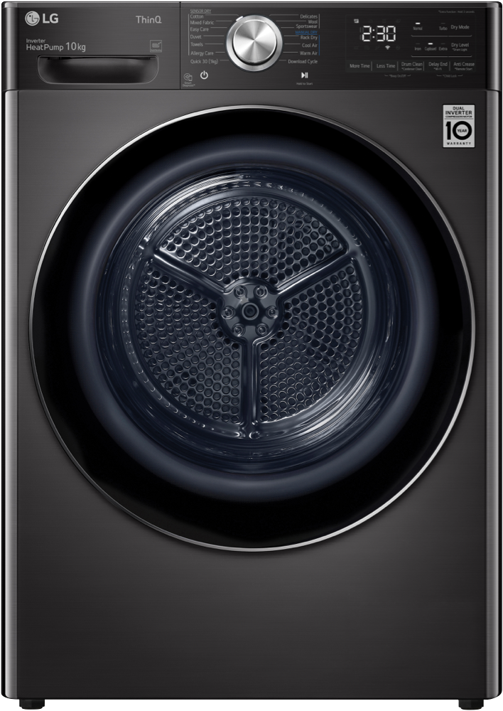 **Introducing the LG 10kg Heat Pump Dryer - Efficient, Gentle, and Cost-Effective Laundry Solutions for Australian Homes** Say goodbye to tedious laundry days and hello to effortless drying with the LG 10kg Heat Pump Dryer. Designed with Australian households in mind, this innovative appliance combines advanced heat pump technology with LG's renowned quality and reliability. With a generous 10kg capacity, this dryer can handle large or bulky loads with ease, making it perfect for families or individuals with multiple laundry needs. The heat pump system harnesses natural heat from the air to dry your clothes, reducing energy consumption by up to 50% compared to traditional condenser dryers. This not only saves you money on your electricity bill but also minimizes your environmental footprint. The LG 10kg Heat Pump Dryer is designed to care for your clothes as much as you do. The gentle drying cycle and advanced moisture-sensing technology ensure your garments are protected from damage and shrinkage. Plus, the anti-crease function and automatic cool-down phase reduce wrinkles and make ironing a breeze. Additional features include a user-friendly interface, multiple cycle options (including delicates, heavy duty, and quick dry), and a convenient delay start function. The dryer's sleek and compact design fits seamlessly into any laundry space, while the advanced noise reduction system ensures quiet operation. Upgrade your laundry experience with the LG 10kg Heat Pump Dryer. Enjoy faster drying times, reduced energy costs, and gentler care for your clothes. Experience the perfect blend of innovation, efficiency, and reliability with LG. Order yours today and discover a smarter way to do laundry!