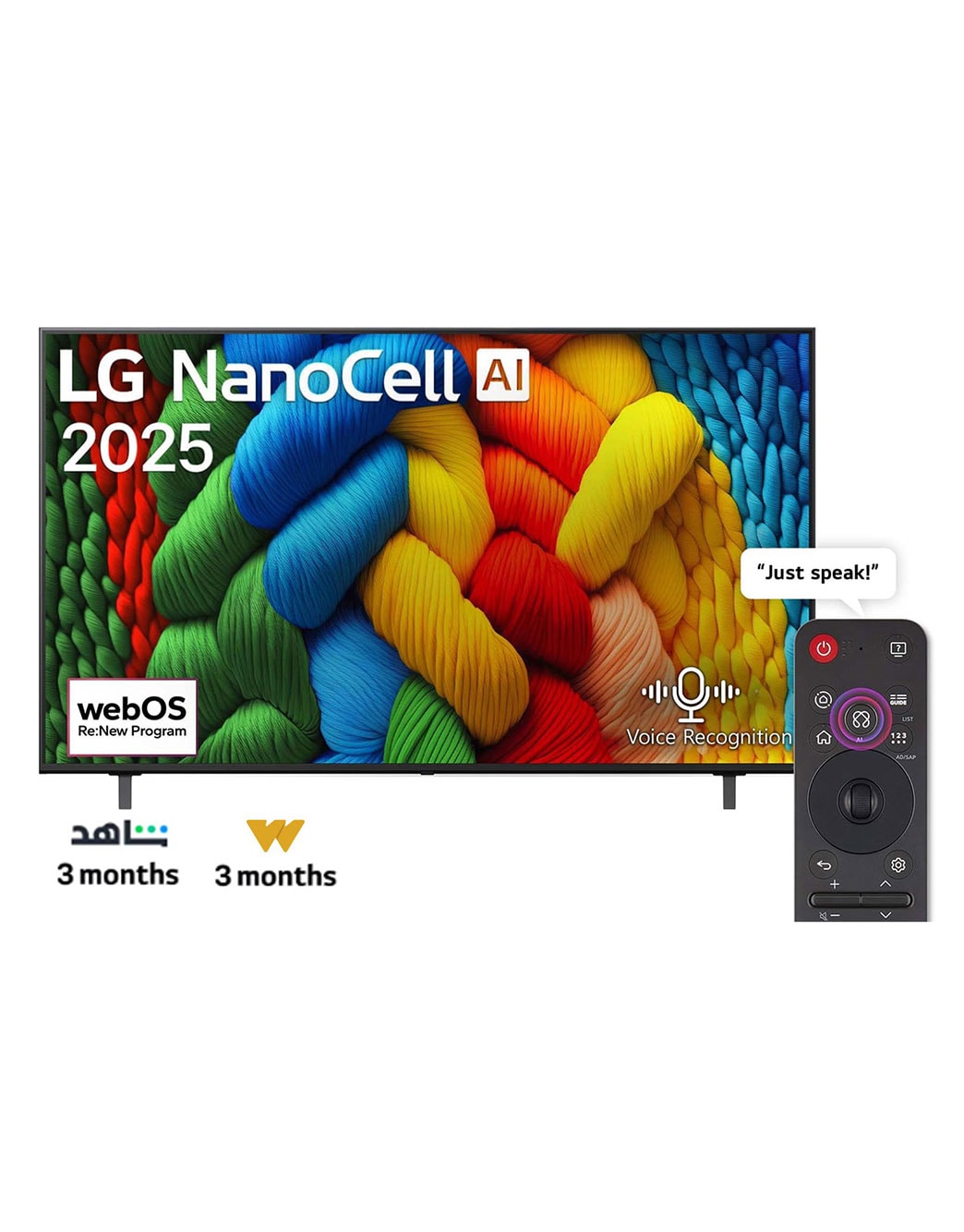 **Experience Cinematic Brilliance with the LG 65" NANO80A AI LED UHD 4K Smart TV** Elevate your entertainment experience to new heights with the LG 65" NANO80A AI LED UHD 4K Smart TV, the pinnacle of modern television technology. This stunning 2025 model boasts an expansive 65-inch NanoCell display, delivering unparalleled picture quality with vibrant colours, infinite contrast, and exceptional clarity. Powered by LG's α (Alpha) 5 Gen 3 AI processor, this TV intelligently optimizes every scene to provide a more immersive viewing experience. With AI Picture Pro, enjoy enhanced colours, contrast, and sharpness, while AI Sound Pro ensures an audio experience that's equally impressive. Enjoy breathtaking 4K UHD resolution, with four times the detail of Full HD, making every movie night, sports event, or gaming session a visual masterpiece. Plus, with support for HDR10, HLG, and Dolby Vision, you'll witness a wider colour gamut and more lifelike images. This smart TV also features LG's intuitive webOS, providing seamless access to your favourite streaming services, including Netflix, Amazon Prime Video, and Disney+. With built-in Wi-Fi and Bluetooth connectivity, you can easily connect your devices and enjoy a world of entertainment at your fingertips. Upgrade your entertainment space with the LG 65" NANO80A AI LED UHD 4K Smart TV, perfect for families, gamers, and movie enthusiasts alike. With its sleek design, stunning picture quality, and advanced AI-driven features, this TV is sure to be the centrepiece of your home entertainment system.