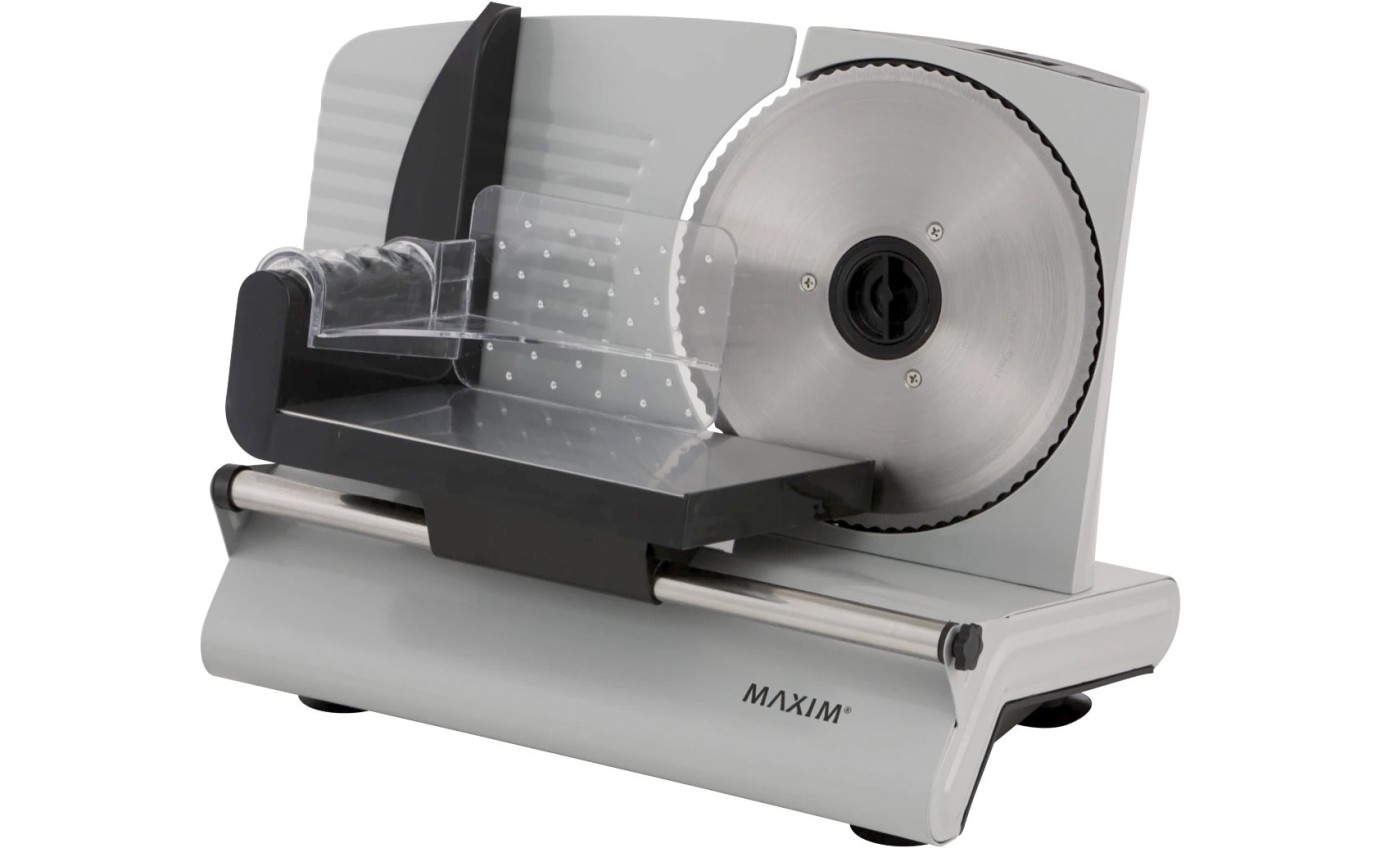 **Introducing the Maxim Electric Deli Style Food Slicer - Effortless Slicing Made Easy** Take your food preparation to the next level with the Maxim Electric Deli Style Food Slicer, designed to make slicing a breeze for home cooks, chefs, and caterers alike. This powerful and versatile electric slicer is built to deliver professional-grade results, effortlessly slicing through meats, cheeses, bread, and vegetables with precision and ease. **Key Features:** * 200W high-torque motor for effortless slicing * Adjustable slice thickness (0.5-15mm) for customized results * 19cm stainless steel blade for durability and rust resistance * Removable and dishwasher-safe carriage and blade cover for easy cleaning * Compact design with non-slip feet for stable operation * Includes a convenient storage case for safekeeping **Benefits:** * Save time and effort with fast and efficient slicing * Achieve consistent, uniform slices every time * Perfect for slicing large quantities of meats, cheeses, and bread for entertaining or commercial use * Easy to clean and maintain, reducing food safety risks * Compact design fits seamlessly into any kitchen setup **Why Choose the Maxim Electric Deli Style Food Slicer?** Whether you're a busy home cook, a professional chef, or a catering service, the Maxim Electric Deli Style Food Slicer is the perfect addition to your kitchen arsenal. With its powerful motor, adjustable slice thickness, and durable stainless steel blade, this slicer is designed to deliver consistent, high-quality results with minimal effort. Say goodbye to tedious manual slicing and hello to more free time to focus on what matters - creating delicious meals and memories with family and friends.