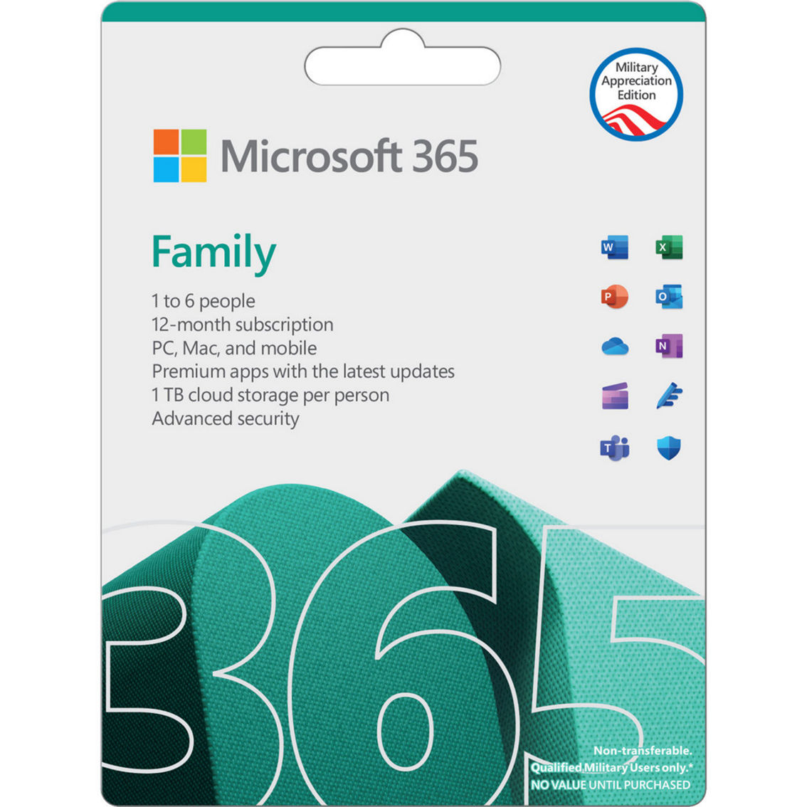 | Additional Features: | 1 TB of OneDrive cloud storage for each person. Includes AI features for 1 person- subscription owner only, cannot be shared. *App availability varies by device/language. Features vary by platform. Minimum age limits may apply to use of AI features. Details:https://aka.ms/Copilot-In-M365-FAQ 1 Microsoft 365 Personal or Family subscription required; usage limits apply to AI features. Learn more https://go.microsoft.com/fwlink/?linkid=2280151 2 Applies to email accounts ending in @outlook.com, @hotmai |