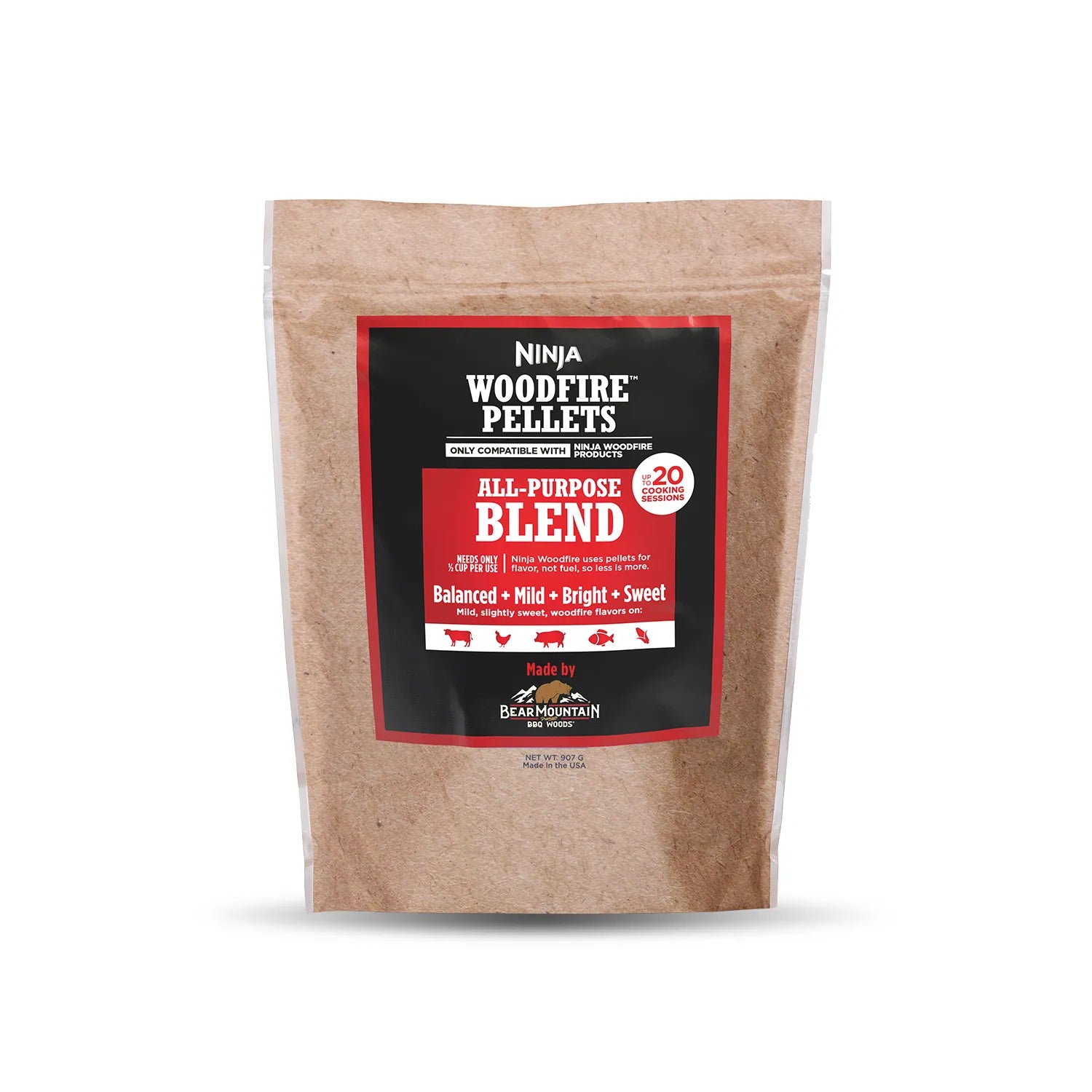 **Unleash the Flavor of the Outback with Ninja 900g Wood Fire Grill All Purpose Blend Pellets** Take your outdoor cooking to the next level with the Ninja 900g Wood Fire Grill All Purpose Blend Pellets, proudly made in Australia. These premium pellets are specifically designed to bring out the authentic flavors of the Australian bush, perfect for BBQ enthusiasts and outdoor cooking aficionados. Our unique blend of 100% natural wood fibers, carefully selected from native Australian hardwoods, ensures a consistent and intense smoke flavor that will elevate your grilled meats, vegetables, and seafood to new heights. The Ninja pellets are perfectly balanced to provide a sweet, smoky, and slightly spicy flavor profile that complements a wide range of dishes, from classic burgers and snags to gourmet meats and veggies. With a generous 900g pack size, you'll have plenty of pellets to fuel your next backyard BBQ or camping trip. The compact, resealable bag ensures easy storage and transport, making it the perfect accessory for any outdoor adventure. What sets our pellets apart is their exceptional burn quality, producing minimal ash and smoke while maintaining a consistent heat output. This means less mess, less hassle, and more time to enjoy the company of friends and family while savoring the delicious flavors of your outdoor creations. Upgrade your outdoor cooking experience with the Ninja 900g Wood Fire Grill All Purpose Blend Pellets. Whether you're a seasoned pitmaster or just starting out, these premium pellets are sure to impress. So why settle for ordinary BBQ when you can unleash the authentic taste of Australia with Ninja Wood Fire Grill Pellets?