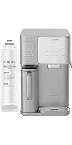 **Revolutionize Your Hydration with the Philips RO Water Station** Experience the ultimate in water purification and convenience with the Philips RO Water Station, featuring innovative Aquaporin Inside technology. This cutting-edge system not only provides clean and refreshing drinking water but also offers the added benefits of hot, cold, and ice-making capabilities, all in one sleek and compact unit. **Pure Water, Every Time** The Philips RO Water Station utilizes advanced Reverse Osmosis (RO) technology, combined with Aquaporin Inside, to remove up to 99.99% of contaminants, including heavy metals, bacteria, and viruses, from your tap water. This ensures that every glass of water you drink is pure, clean, and free from impurities. **Convenience at Your Fingertips** This versatile water station offers a range of convenient features, including: * Instant hot water (up to 95°C) for tea, coffee, or instant soups * Chilled water (down to 5°C) for refreshing drinks on a hot day * Ice cubes made from purified water, perfect for cooling your beverages * A large, 3.2L water tank capacity, reducing the need for frequent refills **Why Choose the Philips RO Water Station?** With its advanced water purification technology, convenient hot, cold, and ice-making capabilities, and sleek design, this product is perfect for health-conscious individuals, busy families, and anyone seeking a convenient and reliable source of pure drinking water. Say goodbye to bottled water and hello to a more sustainable, cost-effective, and convenient hydration solution. Upgrade your drinking water experience with the Philips RO Water Station today!