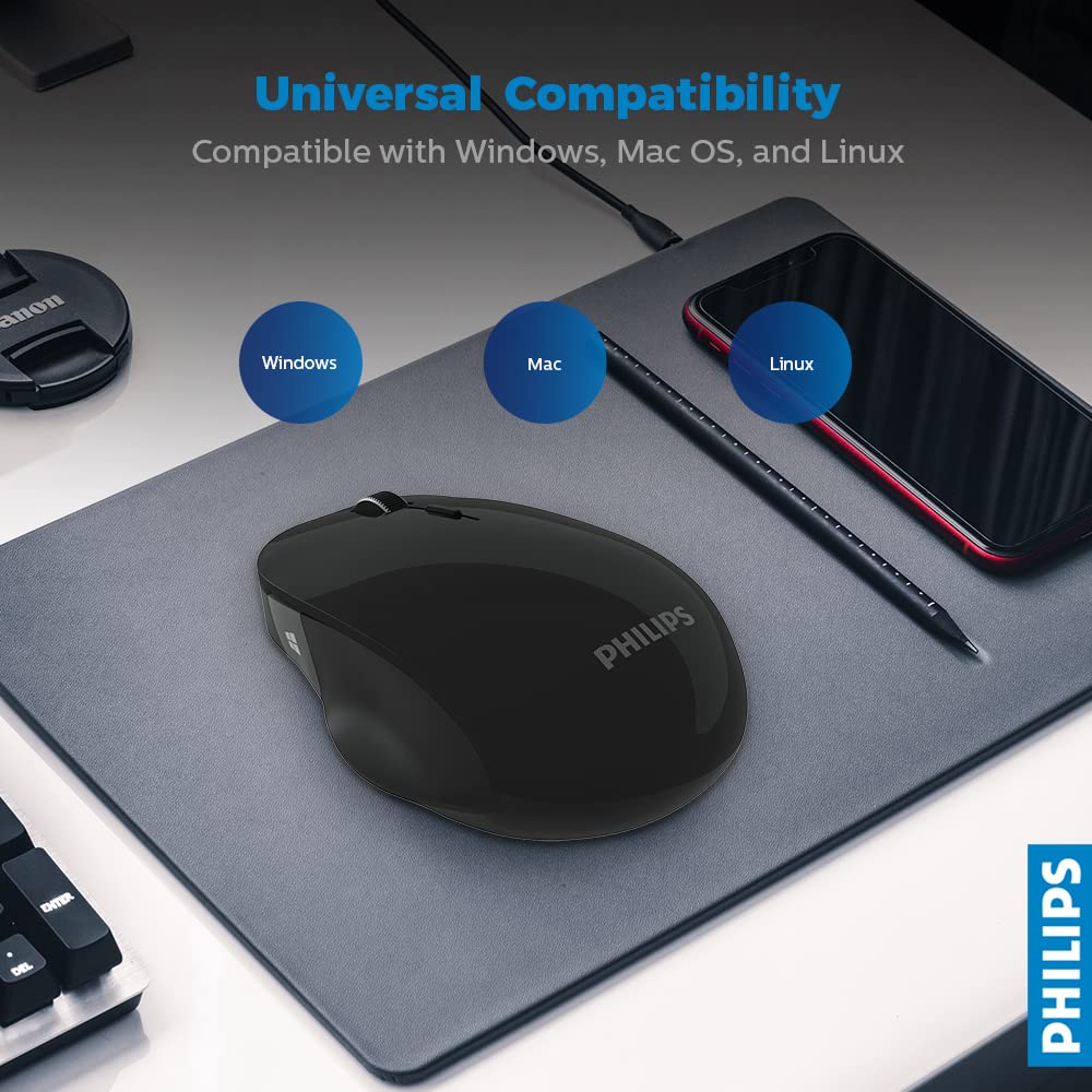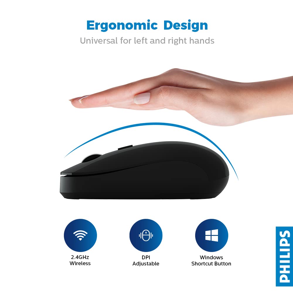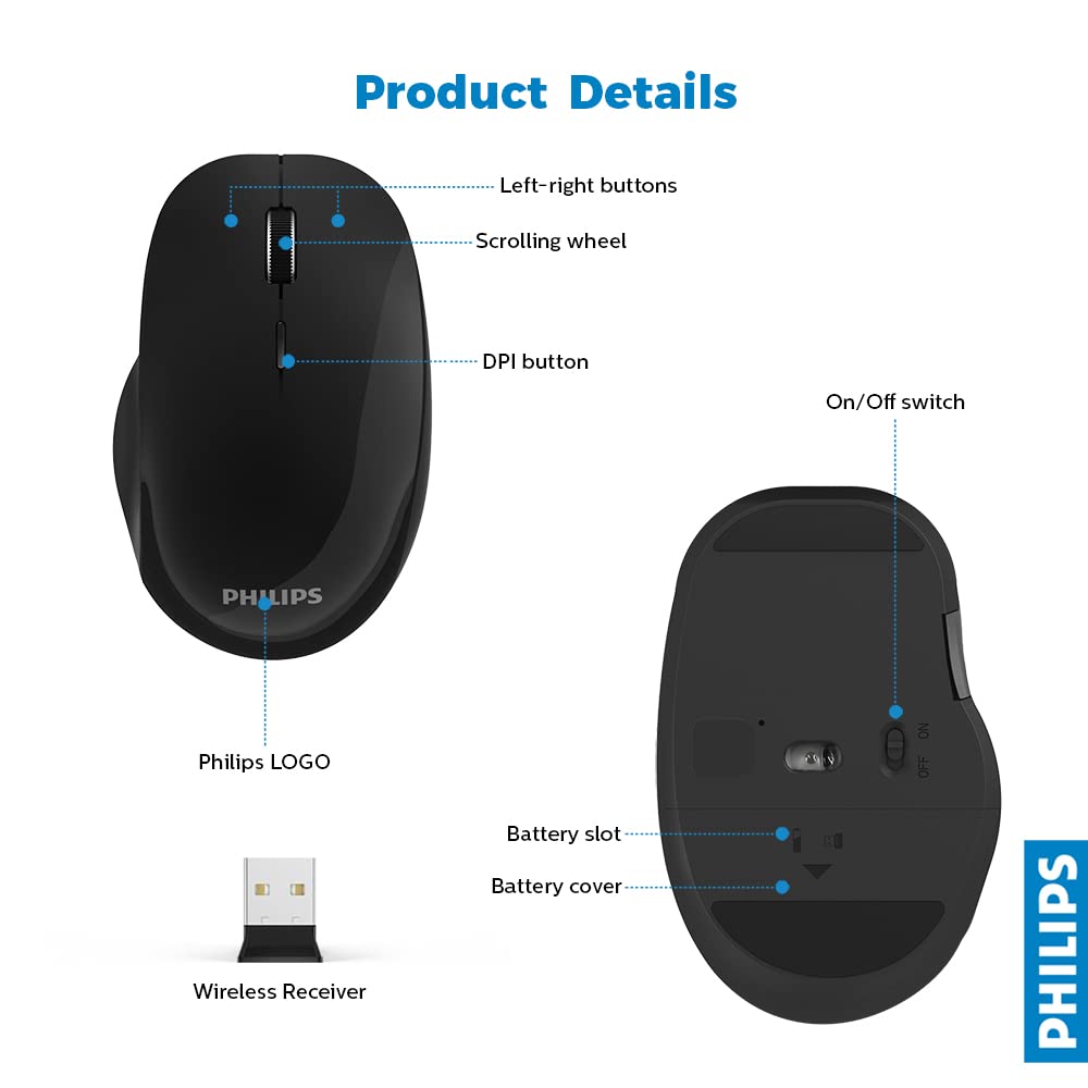 **Unleash Uninterrupted Productivity with the Philips Wireless Mouse** Experience the freedom and convenience of wireless navigation with the Philips Wireless Mouse, designed to boost your productivity and enhance your computing experience. This innovative mouse is engineered to provide seamless connectivity, precise control, and long-lasting performance. Featuring advanced 2.4GHz wireless technology, this mouse ensures reliable and interference-free connections, allowing you to work or play without interruptions. The ergonomic design fits comfortably in your hand, reducing fatigue and discomfort during extended use. The precision optical sensor delivers accurate cursor movement, making it ideal for tasks that require precision, such as graphic design, gaming, or video editing. With a battery life of up to 12 months on a single AA battery, you can enjoy uninterrupted use without worrying about running out of power. The convenient on/off switch and automatic sleep mode help conserve energy, ensuring your mouse is always ready when you need it. The Philips Wireless Mouse is perfect for those who value flexibility and convenience. It's ideal for home offices, coffee shops, or anywhere you need to work on the go. The compact and lightweight design makes it easy to slip into your bag or backpack, ensuring you're always connected and productive. Upgrade your computing experience with the Philips Wireless Mouse, offering the perfect blend of performance, convenience, and reliability. Say goodbye to tangled cords and hello to a more efficient you. Order your Philips Wireless Mouse today and discover a new level of wireless freedom!