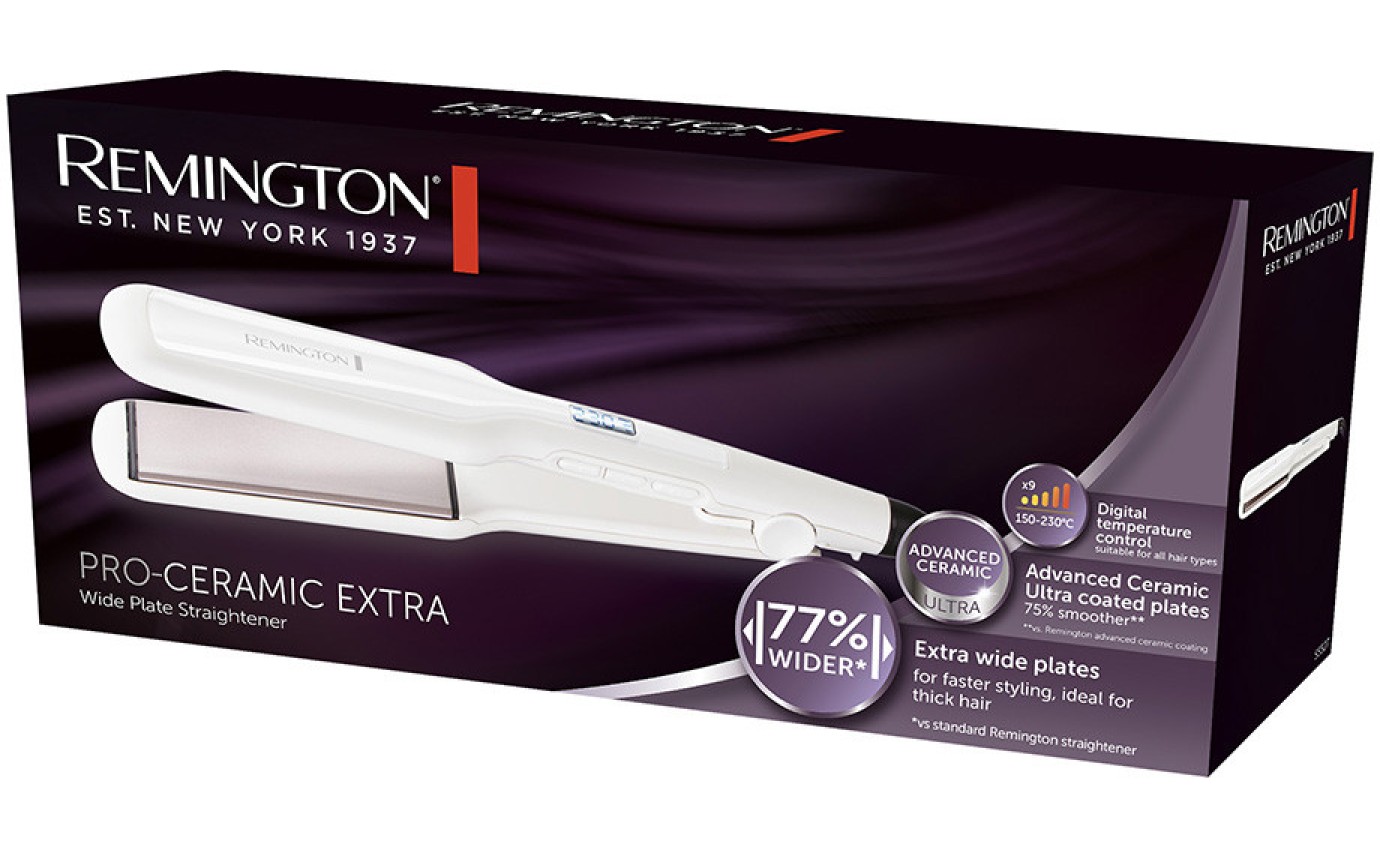 **Introducing the Remington Pro Ceramic Hair Straightener - Professional Styling at Home** Experience salon-quality styling from the comfort of your own home with the Remington Pro Ceramic Hair Straightener. This innovative tool is designed to deliver fast, effortless, and long-lasting straightening results, perfect for Australian hair types. **Advanced Ceramic Technology** The Remington Pro features advanced ceramic plates that glide effortlessly through your hair, distributing heat evenly to prevent hotspots and damage. This technology ensures a smooth, silky finish and minimizes frizz, resulting in a sleek and healthy-looking hairdo that lasts all day. **Quick and Easy Styling** With its advanced heating system, this straightener heats up to 230°C in just 30 seconds, allowing you to style your hair quickly and efficiently. The 110mm plates are designed for easy styling, making it simple to straighten even the thickest or curliest of hair. **Multiple Heat Settings and Safety Features** The Remington Pro comes with 10 variable heat settings, allowing you to customize your styling experience to suit your hair type and style. Additionally, the straightener features automatic shut-off, a heat-resistant design, and a 3-metre swivel cord for added convenience and safety. **Why Choose the Remington Pro Ceramic Hair Straightener?** This straightener is perfect for anyone looking for a high-quality, easy-to-use styling tool that delivers professional results at home. With its advanced ceramic technology, quick heating system, and multiple heat settings, you'll be able to achieve salon-quality styles in no time. Say goodbye to bad hair days and hello to sleek, smooth locks with the Remington Pro Ceramic Hair Straightener. Order yours today!