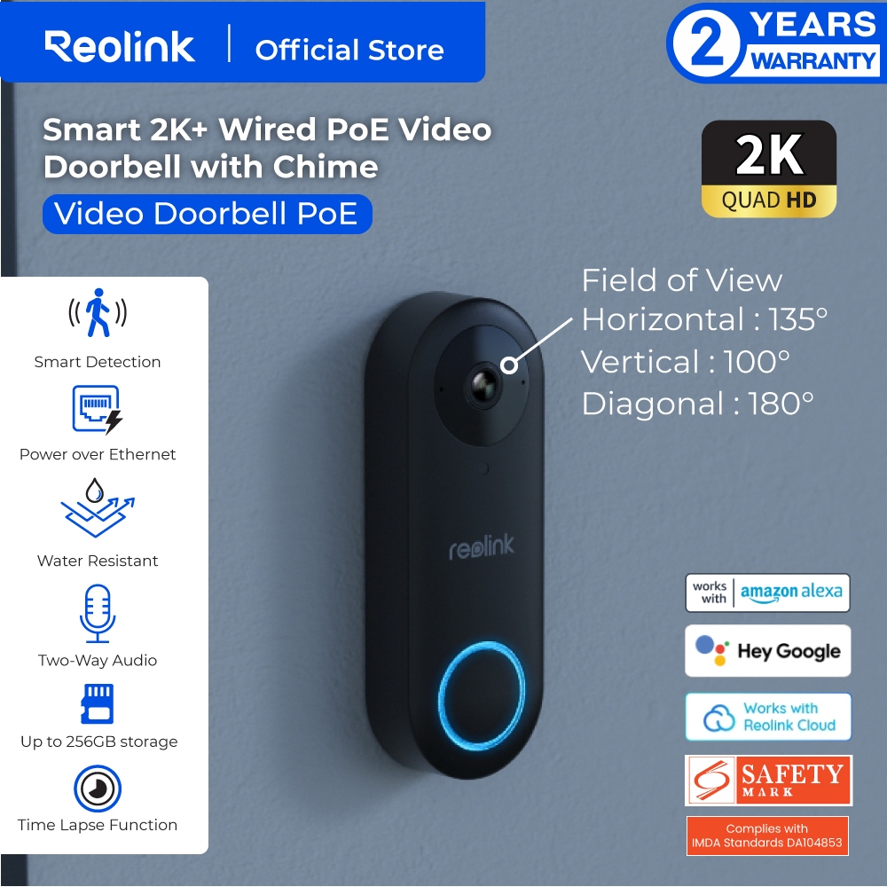**Experience Unparalleled Home Security with the Reolink 2K Wired PoE Video Doorbell with Chime** Upgrade your home's security and convenience with the Reolink 2K Wired PoE Video Doorbell with Chime, designed specifically for the Australian market. This cutting-edge doorbell camera offers crystal-clear 2K resolution, allowing you to see every detail, day or night, thanks to its advanced infrared night vision. With Power over Ethernet (PoE) technology, installation is a breeze, eliminating the need for batteries or complicated wiring. Simply connect the doorbell to your router using a single Ethernet cable, and you're ready to go. The included chime unit ensures you'll never miss a visitor, even when you're not near your phone or tablet. Stay connected to your home from anywhere, at any time, with the Reolink app. Receive instant notifications when motion is detected, and engage with visitors remotely using two-way audio. The doorbell's weather-resistant design and IP66 rating ensure it can withstand Australia's harsh climate, while the wide-angle lens provides a 130° field of view, capturing more of the scene. Enjoy enhanced security features, including motion detection, alerts, and recording capabilities, all stored locally on the camera's SD card (up to 128GB). The Reolink 2K Wired PoE Video Doorbell with Chime is the perfect solution for homeowners seeking a reliable, high-definition video doorbell that integrates seamlessly with their existing network infrastructure. Experience peace of mind and convenience at your fingertips with this innovative Australian-designed product.