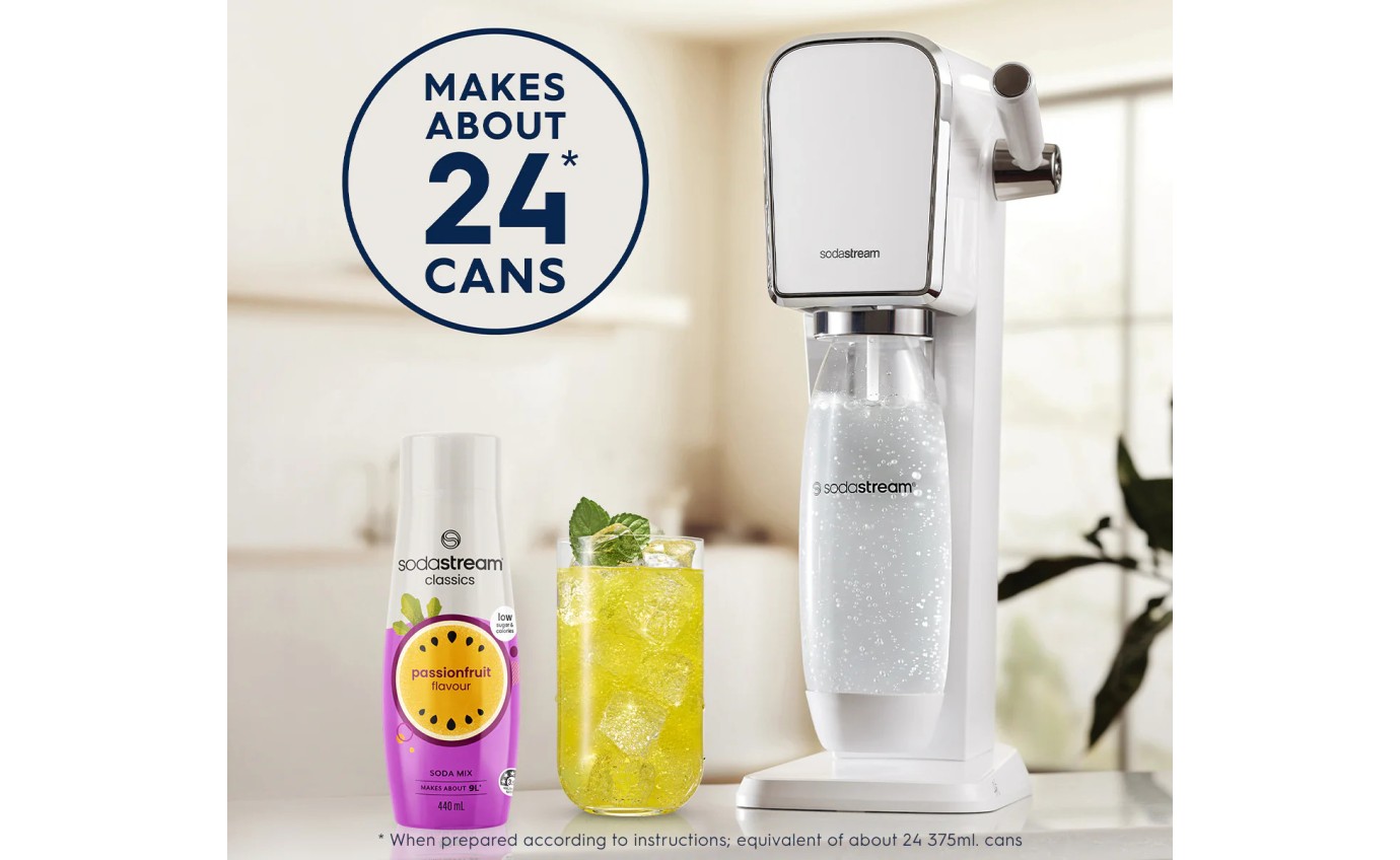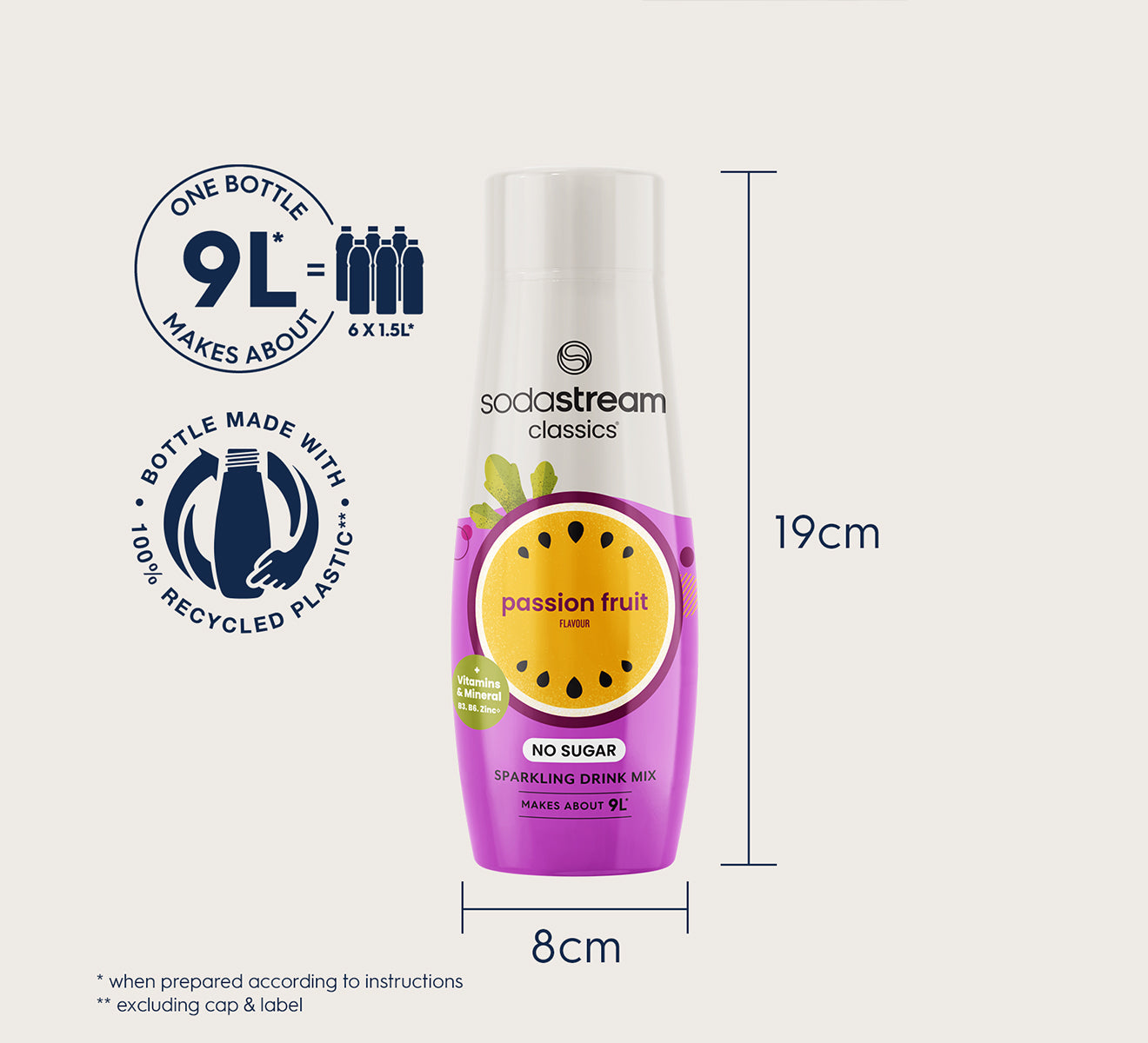 Introducing the Sodastream Classic Passionfruit Syrup, a refreshing twist on the classic soda maker experience. This Australian-made syrup is specifically designed to work seamlessly with your Sodastream machine, allowing you to create a fizzy and flavorful passionfruit soda in the comfort of your own home. With its vibrant yellow color and sweet-tart flavor, this syrup is a true reflection of the juicy passionfruit that inspired it. Made with real passionfruit puree and natural flavorings, this syrup is free from artificial colors, preservatives, and sweeteners, making it a guilt-free indulgence for the whole family. The benefits of the Sodastream Classic Passionfruit Syrup are endless. Not only does it add a delicious and unique flavor to your homemade soda, but it's also a cost-effective and environmentally friendly alternative to store-bought soda. With this syrup, you can create up to 25 liters of passionfruit soda, equivalent to 66 cans of soda, reducing your waste and saving you money in the long run. But what really sets this syrup apart is its versatility. Use it to create a refreshing passionfruit soda on its own, or experiment with different flavors by mixing it with other Sodastream syrups. You can even use it as a topping for desserts, cocktails, or mocktails, adding a burst of tropical flavor to any occasion. Whether you're a fan of passionfruit, a soda enthusiast, or just looking for a fun and healthy way to spice up your beverage routine, the Sodastream Classic Passionfruit Syrup is a must-have addition to your pantry. So why wait? Get creative, get fizzy, and get ready to indulge in the sweet and tangy taste of Australia's favorite fruit.