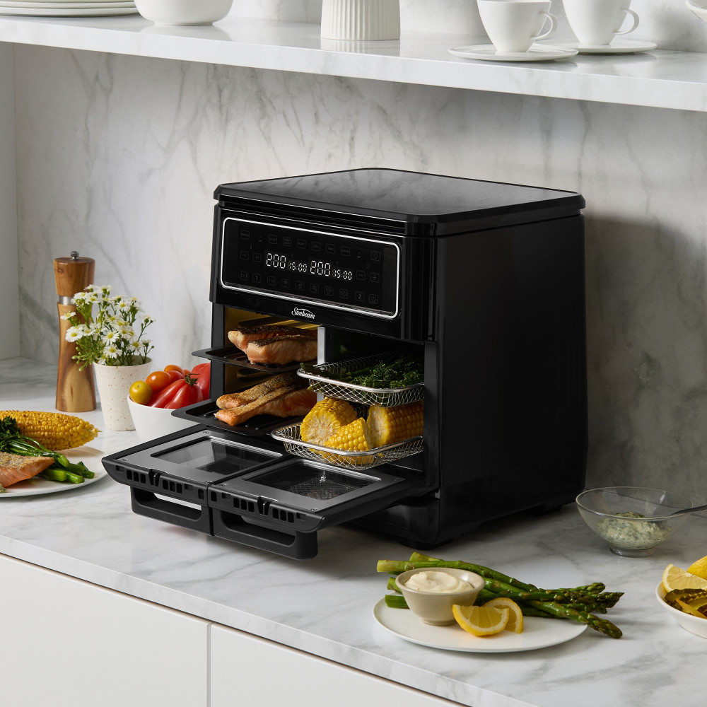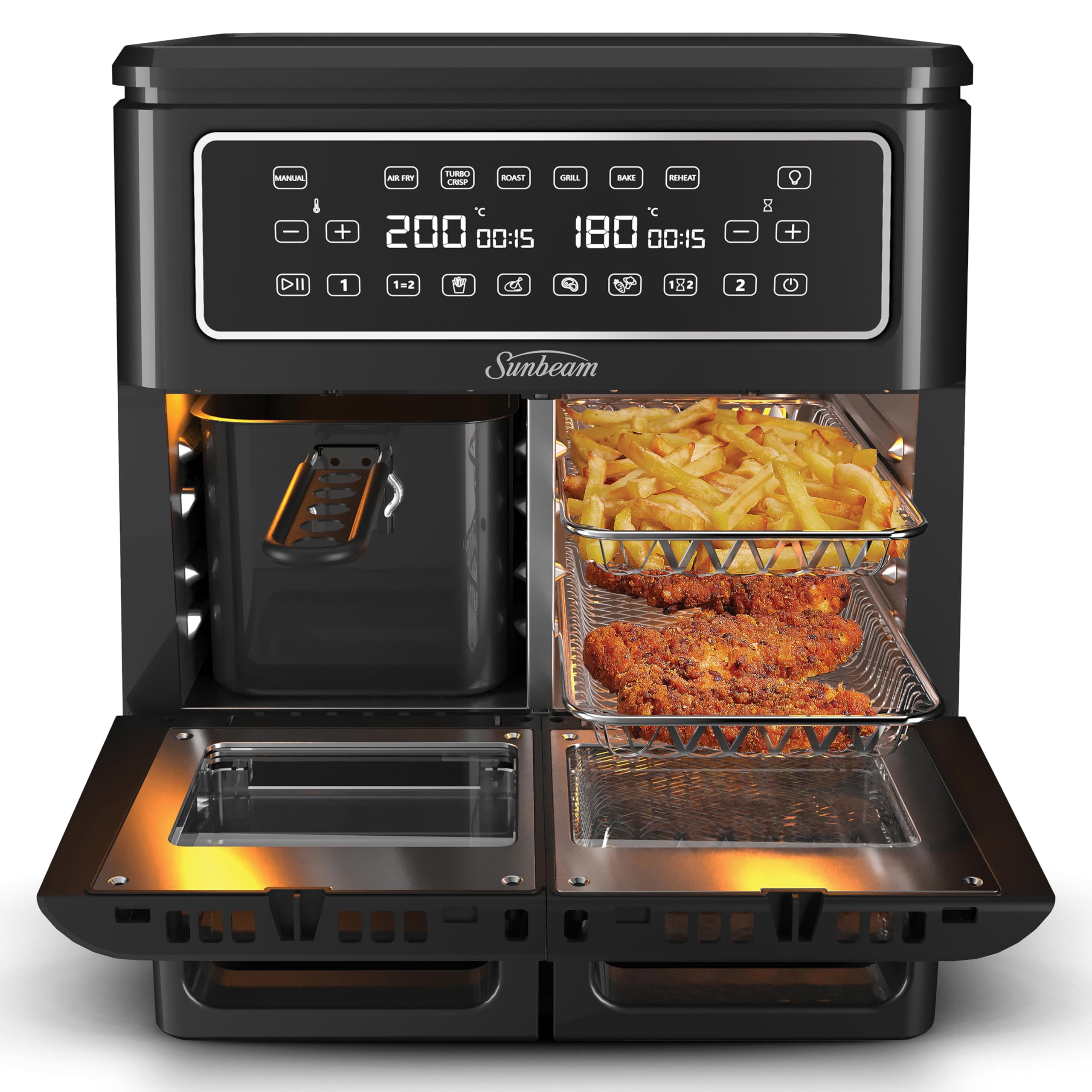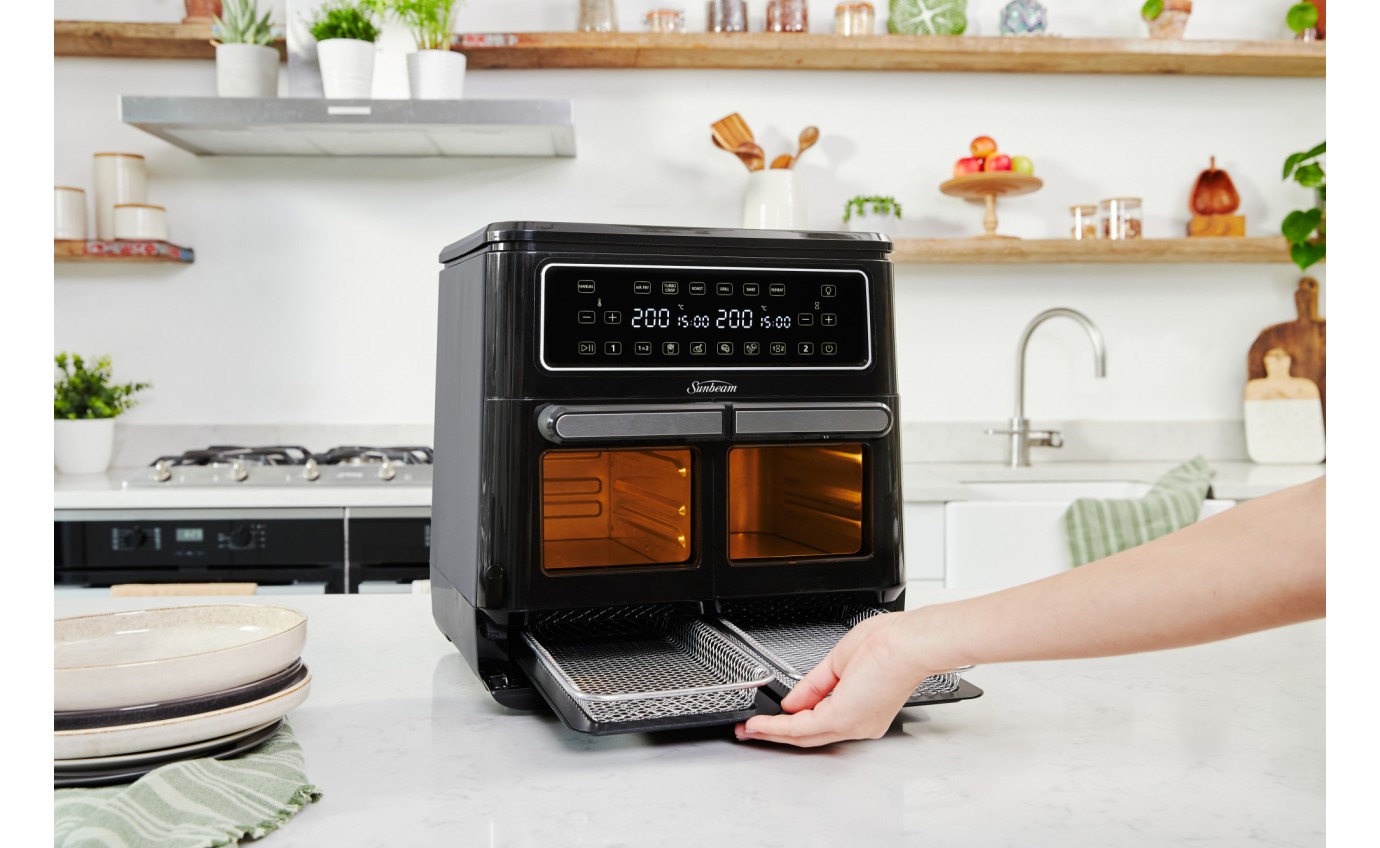 | What's In The Box: | Sunbeam Multi Zone Air Fryer Oven, included accessories - 2x Air fry baskets, 3x Air fry trays, 3x Roasting trays, 1x Basket handle |