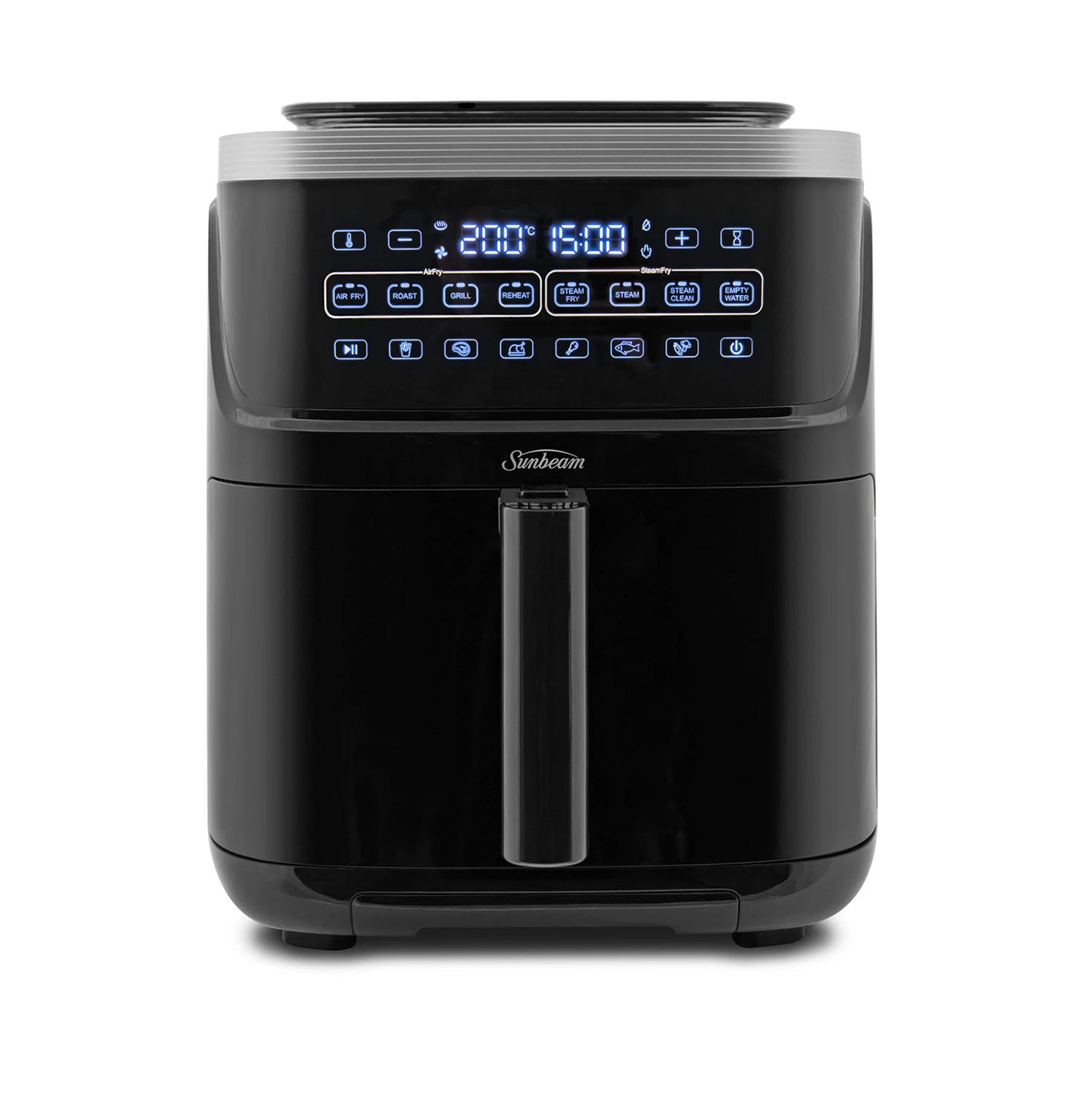 **Introducing the Sunbeam Steam Fry Air Fryer + Steam: The Ultimate Healthy Cooking Solution** Experience the future of healthy cooking with the innovative Sunbeam Steam Fry Air Fryer + Steam, designed to revolutionize your kitchen. This cutting-edge appliance combines the benefits of air frying, steaming, and grilling in one convenient device, allowing you to prepare a wide range of delicious and nutritious meals with ease. With its advanced steam frying technology, this air fryer uses little to no oil, reducing fat content by up to 50% compared to traditional deep-frying methods. The result? Crispy, golden-brown food that's not only healthier but also bursting with flavor. The steam function adds an extra layer of moisture, ensuring your dishes are tender, juicy, and full of texture. The Sunbeam Steam Fry Air Fryer + Steam boasts an impressive 7-in-1 functionality, featuring settings for air frying, steaming, grilling, roasting, baking, reheating, and dehydrating. This versatility allows you to cook a diverse range of dishes, from succulent meats and seafood to vibrant vegetables, crispy snacks, and even baked goods. This Australian-designed product is built with convenience in mind, featuring a large 3.2L capacity, easy-to-use touchscreen interface, and dishwasher-safe parts for effortless cleaning. The steam fryer also comes with a range of accessories, including a steam basket, grill pan, and recipe book, to get you started on your healthy cooking journey. Upgrade your kitchen with the Sunbeam Steam Fry Air Fryer + Steam, and discover a world of healthy, flavorful cooking possibilities. Perfect for health-conscious individuals, busy families, and food enthusiasts alike, this innovative appliance is sure to become your new go-to cooking companion.