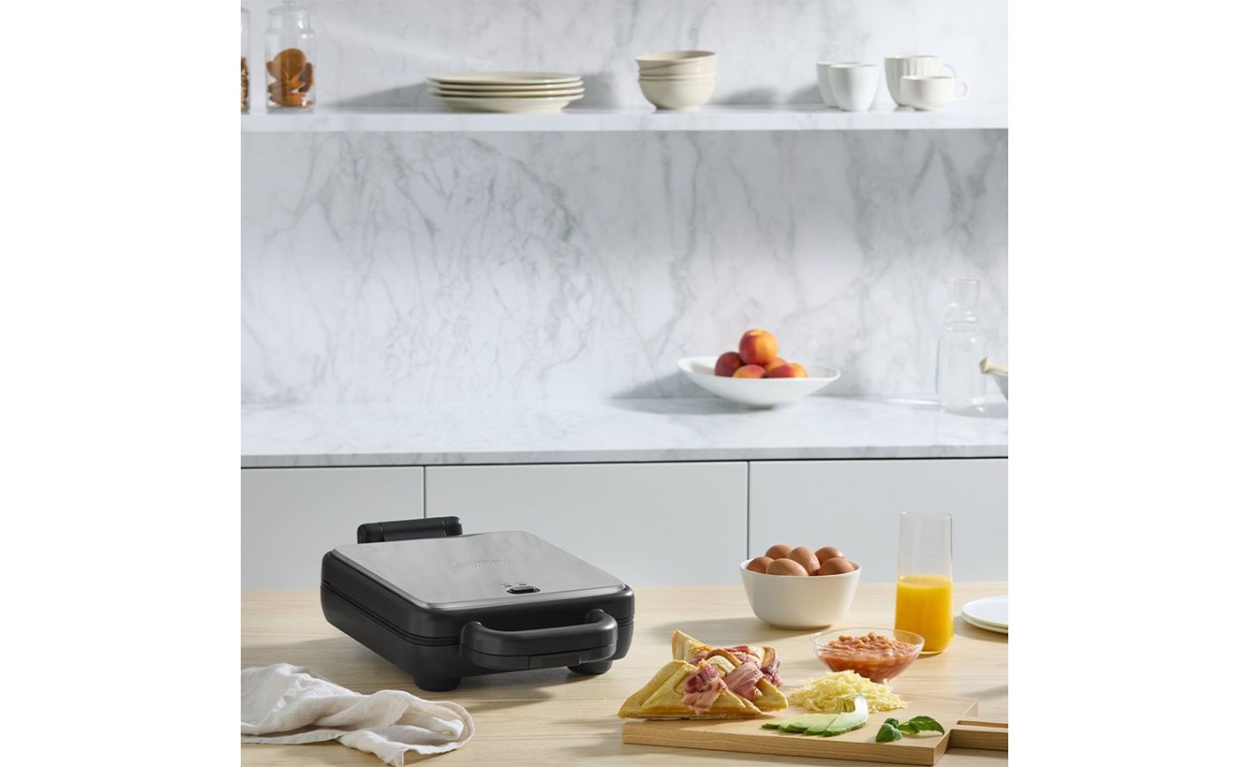 | Additional Features: | Turbo Crunch button for extra crispy toasties and jaffles, Cooking plates designed with no crumb traps for easy wipe cleanup, Durable Easy Clean Cooking Plates, Built in cord wrap, 90cm Cord length, Cool touch handle, Non-slip feet |