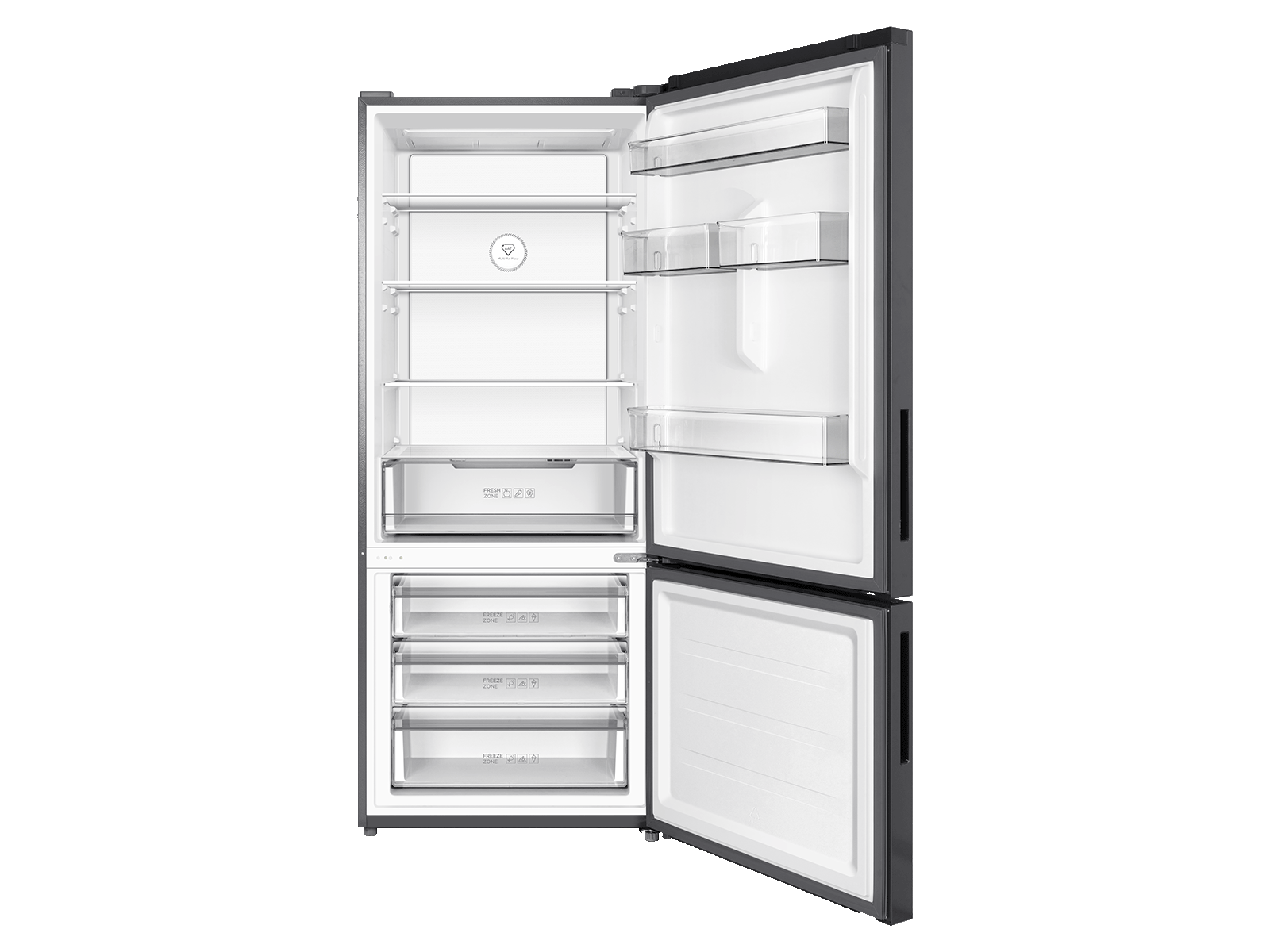 **Experience Freshness and Convenience with the TCL 416L Bottom Mount Refrigerator** Are you tired of cluttered kitchens and mediocre refrigeration? Look no further than the TCL 416L Bottom Mount Refrigerator, designed to bring a new level of freshness and convenience to your Australian home. With its spacious 416-litre capacity, this refrigerator provides ample room for all your favourite foods, drinks, and leftovers, keeping them fresher for longer. The bottom mount design offers a unique advantage, allowing you to store heavy items like bottles and jars at the bottom, making them easier to access and reducing the risk of breakage. The adjustable shelves and compartments provide flexibility and customization, ensuring that every item has its perfect place. The humidity-controlled crisper drawers maintain the ideal environment for fruits and vegetables, keeping them crunchy and vibrant. This TCL refrigerator boasts advanced features like Multi-Air Flow Technology, which circulates cold air evenly throughout the compartment, and the Fast Chill function, which rapidly cools new items to the optimal temperature. The Inverter Technology ensures energy efficiency, reducing your energy bills and environmental impact. Enjoy the convenience of advanced features like the Automatic Ice Maker, which produces crystal-clear ice cubes at the touch of a button, and the Door Alarm, which alerts you if the door is left open for too long. With its sleek and modern design, the TCL 416L Bottom Mount Refrigerator is not only functional but also a stylish addition to your kitchen. Upgrade your refrigeration experience today and discover a fresher, healthier, and more convenient way to store your food and drinks.