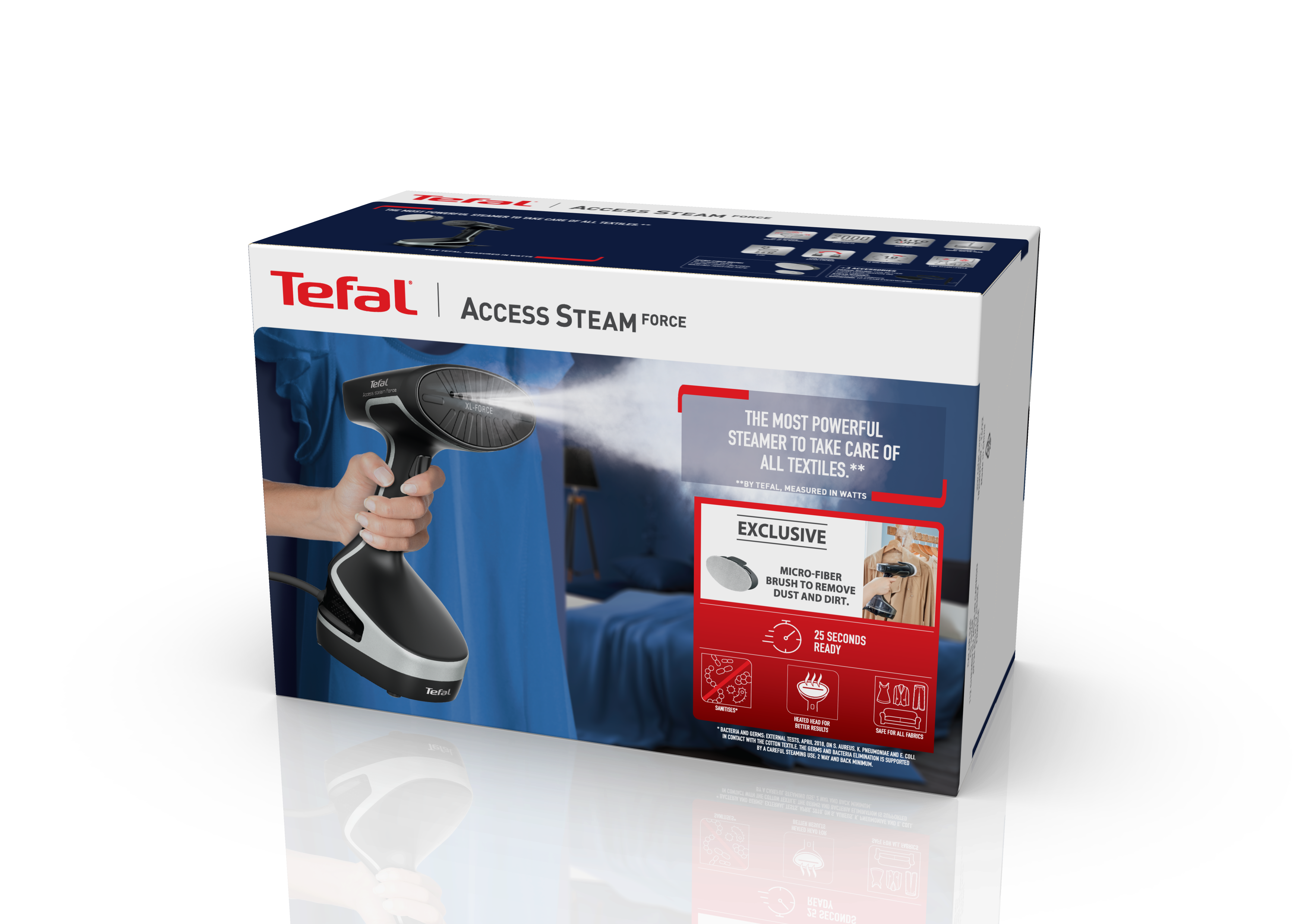 **Effortless Garment Steaming with Tefal Access Steam Force Handheld Garment Steamer** Say goodbye to wrinkles and hello to effortless garment steaming with the Tefal Access Steam Force Handheld Garment Steamer. This innovative, Australian-designed product is the perfect solution for busy individuals who want to look their best without the hassle of ironing. With its powerful 1600W motor and advanced steam technology, the Tefal Access Steam Force Handheld Garment Steamer quickly and easily removes wrinkles and creases from fabrics, leaving your clothes looking smooth and refreshed. The handheld design makes it easy to maneuver around delicate fabrics and hard-to-reach areas, while the compact size makes it perfect for travel or storage. The Tefal Access Steam Force Handheld Garment Steamer features a unique steam burst function, which releases a concentrated burst of steam to tackle even the toughest wrinkles. The adjustable steam control allows you to customize the steam output to suit your fabric type, and the integrated crease tool helps to precision-steam tricky areas like collars and cuffs. This versatile steamer is not just limited to garments - it's also perfect for sanitizing upholstery, curtains, and other fabrics around the home. With its safety features, including automatic shut-off and a heat-resistant handle, you can steam with confidence. Experience the convenience and ease of the Tefal Access Steam Force Handheld Garment Steamer. Perfect for busy professionals, travelers, and anyone who wants to look their best without the hassle of ironing. Order yours today and discover a faster, easier way to achieve wrinkle-free style.