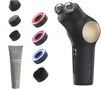 | What's In The Box: | TheraFace PRO device, 3 percussive attachments (Cone, Micropoint, Flat), Microcurrent Ring (TheraFace Microcurrent Ring must be used with a TGA-compliant microcurrent conductive gel, not included with TheraFace PRO), LED Light Therapy Ring (Red, Blue, & Infrared Light), Cleansing Ring, Soft Carrying Bag, Stand, USB-A to USB-C charging cable |