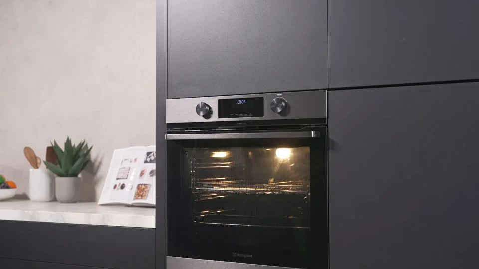 **Introducing the Westinghouse 60cm Pyrolytic Steam Oven: The Ultimate Cooking Solution** Elevate your cooking experience with the Westinghouse 60cm Pyrolytic Steam Oven, designed to bring professional-grade cooking to your home kitchen. This innovative appliance combines the benefits of pyrolytic cleaning, steam cooking, and conventional oven functionality in one sleek and compact unit. **Pyrolytic Cleaning: Effortless Maintenance** Say goodbye to tedious oven cleaning with the Westinghouse Pyrolytic Steam Oven's self-cleaning feature. At the touch of a button, the oven reaches high temperatures to decompose food residue and grime, leaving your oven sparkling clean and residue-free. **Steam Cooking: Healthy and Delicious** The steam cooking function allows you to cook a variety of dishes to perfection, while retaining nutrients and flavors. With precise temperature control, you can prepare healthy and delicious meals, from tender seafood to perfectly cooked vegetables. **Conventional Oven Functionality: Versatility at Its Best** In addition to steam cooking, the Westinghouse Pyrolytic Steam Oven also features a conventional oven mode, perfect for roasting, baking, and broiling. With 11 cooking functions, including slow cooking and proofing, you'll be able to tackle even the most complex recipes with ease. **Why Choose the Westinghouse 60cm Pyrolytic Steam Oven?** * Space-saving design, perfect for modern kitchens * Easy cleaning and maintenance with pyrolytic technology * Healthy and delicious steam cooking options * Versatile conventional oven functionality * Sleek and modern design, complementing any kitchen aesthetic Upgrade your cooking experience with the Westinghouse 60cm Pyrolytic Steam Oven. With its innovative features, convenient functionality, and stylish design, this oven is sure to become the centerpiece of your kitchen.