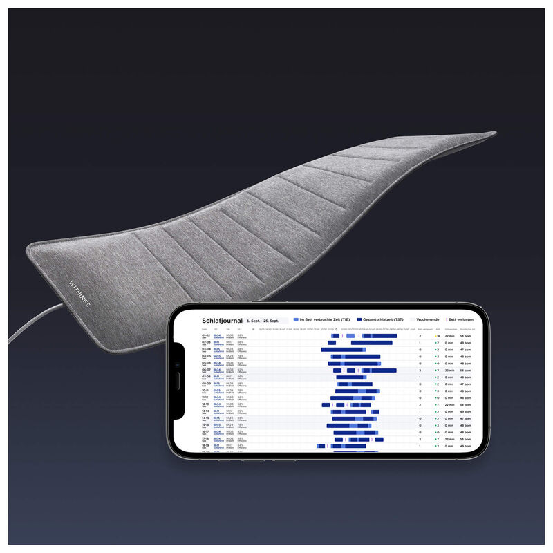 **Unlock the Secret to a Restful Night's Sleep with the Withings Sleep Analyser** Are you tired of waking up feeling groggy and unrefreshed? Do you struggle to fall asleep or stay asleep throughout the night? The Withings Sleep Analyser is here to revolutionise your sleep experience. This innovative, Australian-designed device tracks your sleep patterns, providing invaluable insights to help you optimise your rest and wake up feeling revitalised. This slim, sensor-based mat fits discreetly under your mattress, monitoring your sleep cycles, duration, and quality. It also tracks your heart rate, breathing rate, and body movements, providing a comprehensive picture of your sleep health. The Withings Sleep Analyser uses advanced algorithms to identify patterns and offer personalized recommendations to improve your sleep hygiene. With the Withings Sleep Analyser, you'll gain a deeper understanding of your sleep habits, including: * Time spent in light, deep, and REM sleep * Sleep duration and quality * Heart rate and breathing rate during sleep * Body movements and sleep disruptions Armed with this knowledge, you can make informed changes to your bedtime routine, creating a sleep-conducive environment that promotes better rest. The Withings Sleep Analyser also integrates seamlessly with the Withings Health Mate app, allowing you to track your progress, set goals, and receive expert advice to help you sleep better. Say goodbye to restless nights and hello to a refreshed, rejuvenated you. The Withings Sleep Analyser is the perfect tool for anyone seeking to improve their sleep quality, increase energy levels, and wake up feeling refreshed and ready to take on the day.